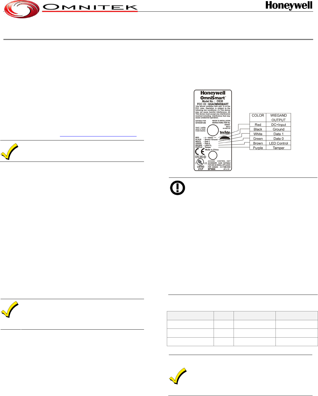 Honeywell Access Systems OMNISMART1 Tag Reader User Manual Ademco OmniSmart Installation Manual