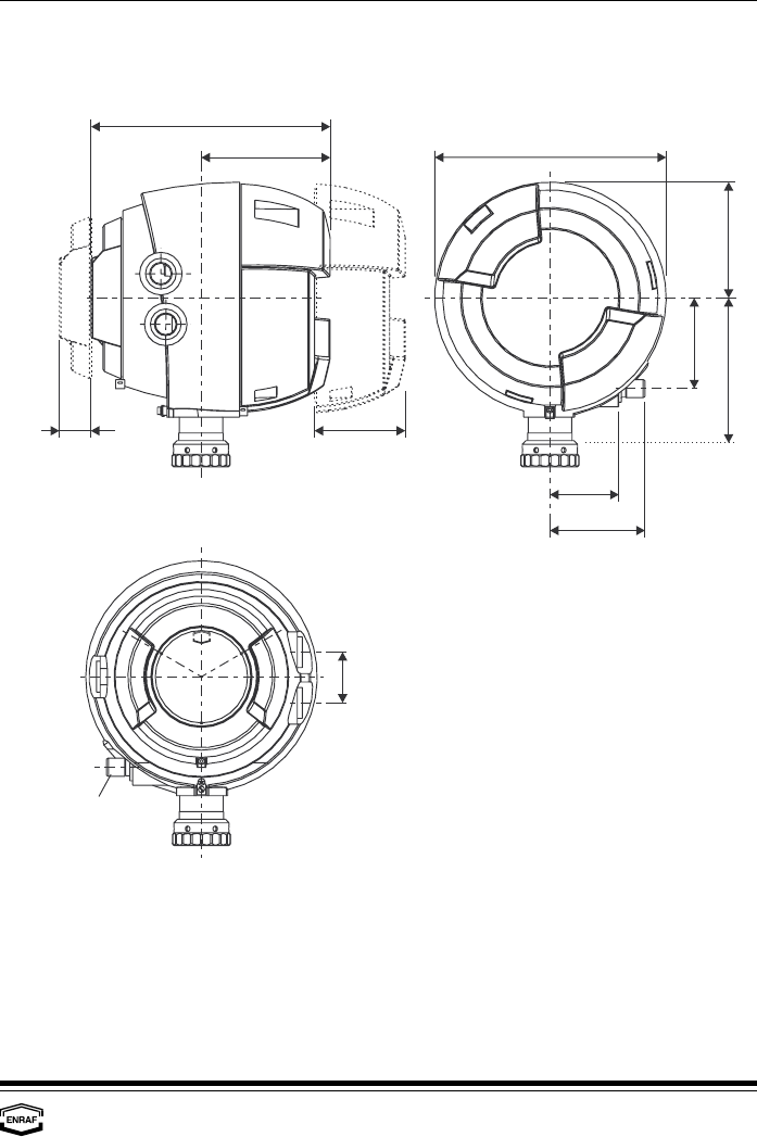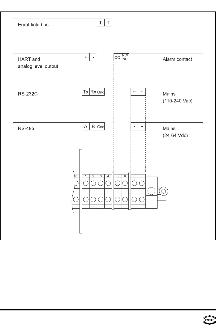 mains, alarm output and Enraf field bus cable. The shielding must be grounded in the cable