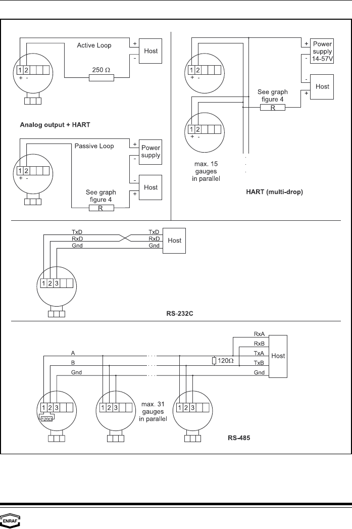Tank Side Indicator : Twisted pair and shielded; R = 5 Ω / line, maximum cable length