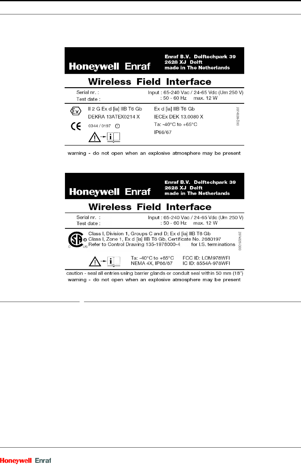 Honeywell Enraf 978WFI Wireless Field Interface User Manual WFI IOM