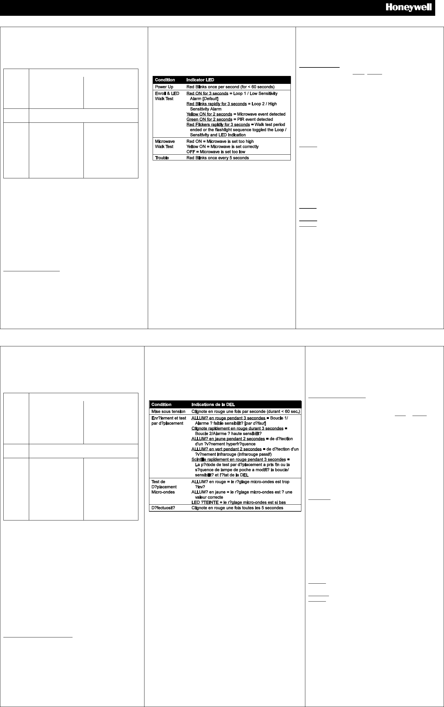 Honeywell Security Sensor CoE Wireless DUAL TEC Motion Sensor LED OPERATION