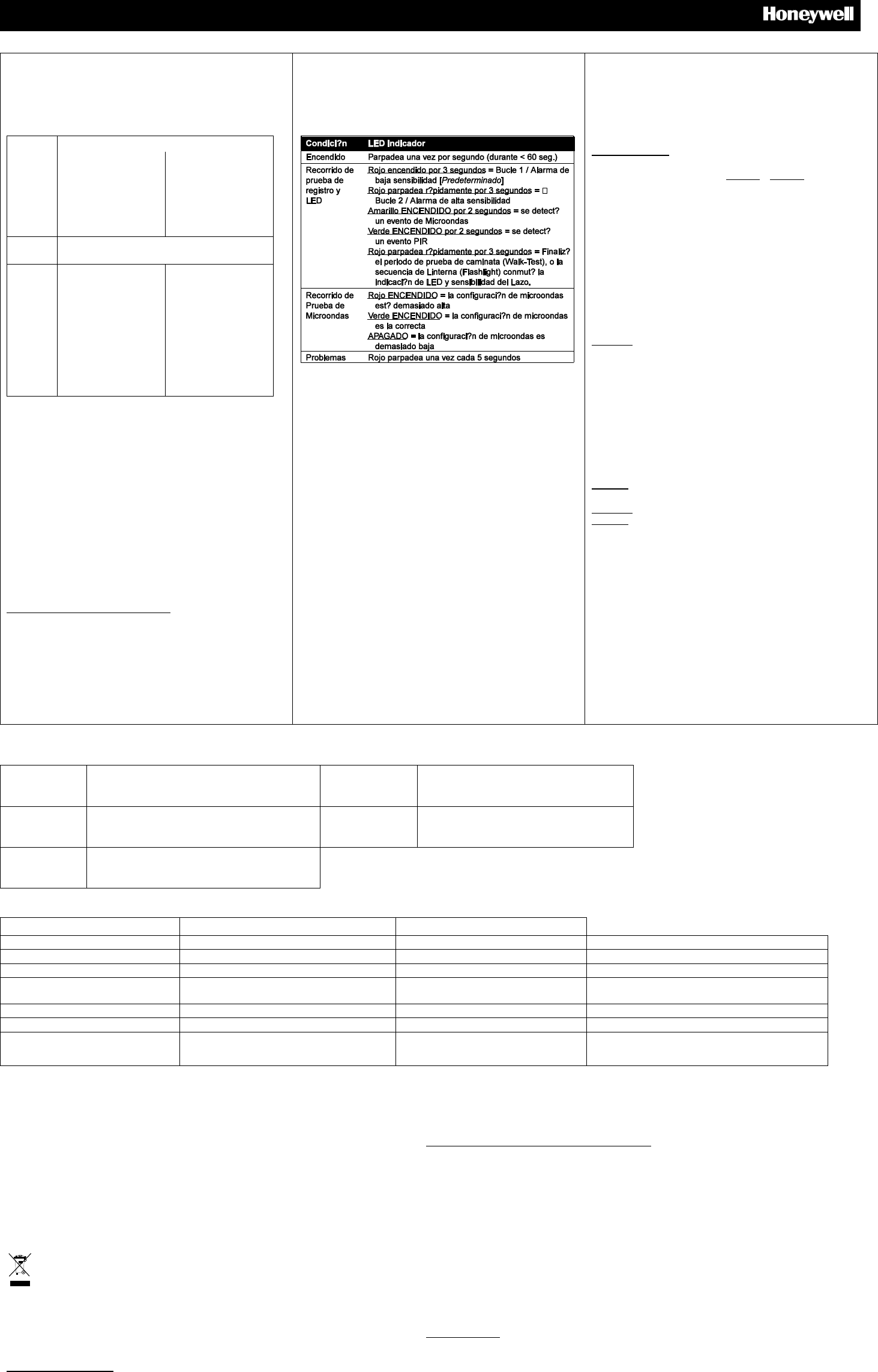 Por favor contacte con su distribuidor Honeywell Security para informació n sobre la garantía del producto.