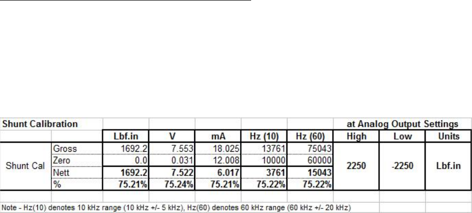 from this data table is the apparent change in TORQUE due to shunt cal, and in the case of this example,