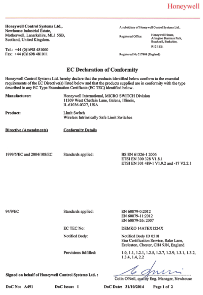 Honeywell Sensing and Control WBX001 WBX001 User Manual Exhibit D Users Manual per 2 1033 b3
