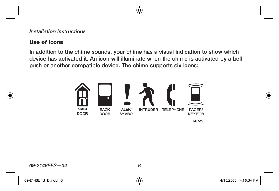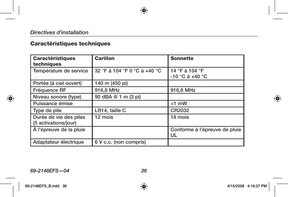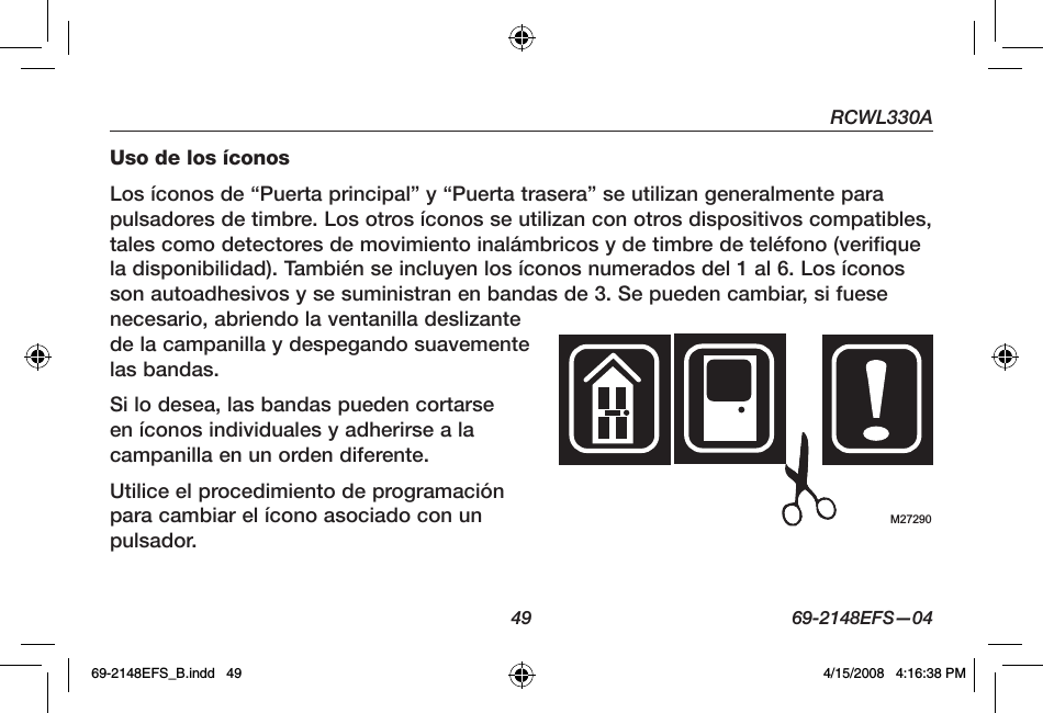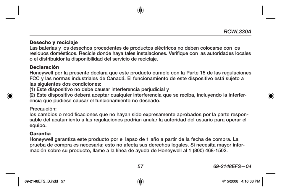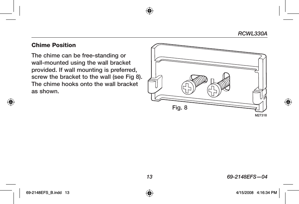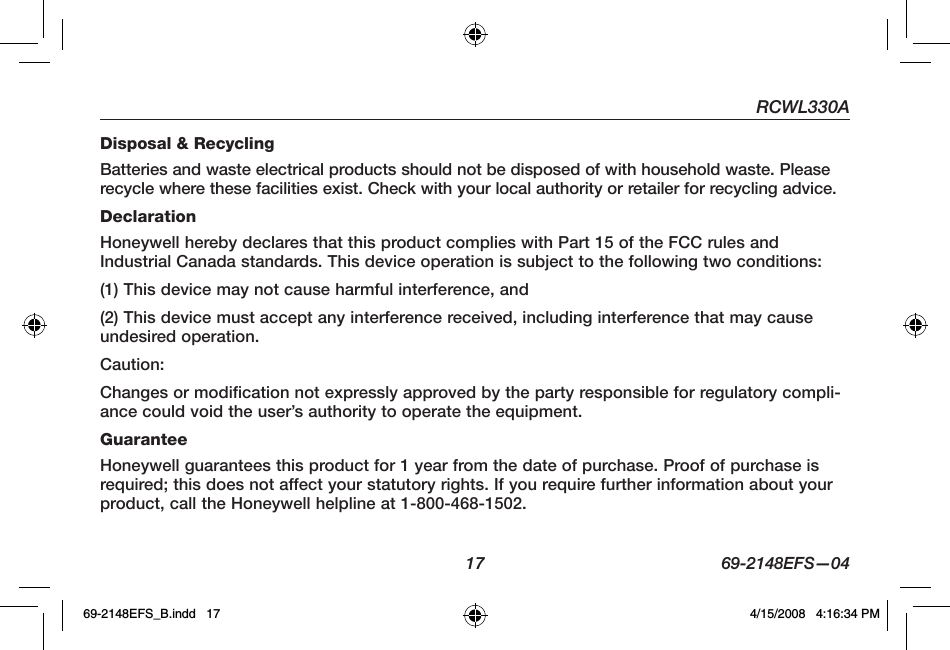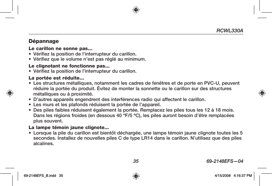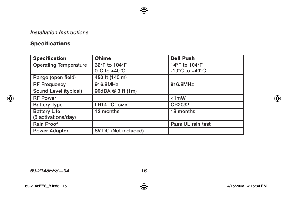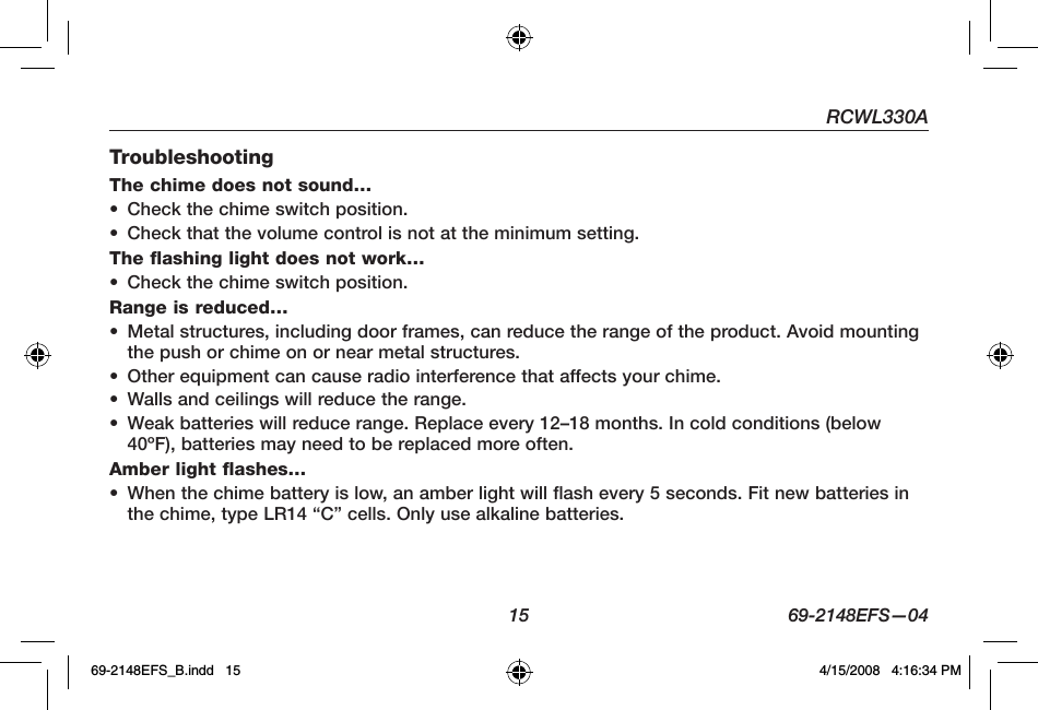 Honeywell 51459SL Premium Portable Plus Wireless Chime User Manual 69 2148EFS 04 RCWL330A