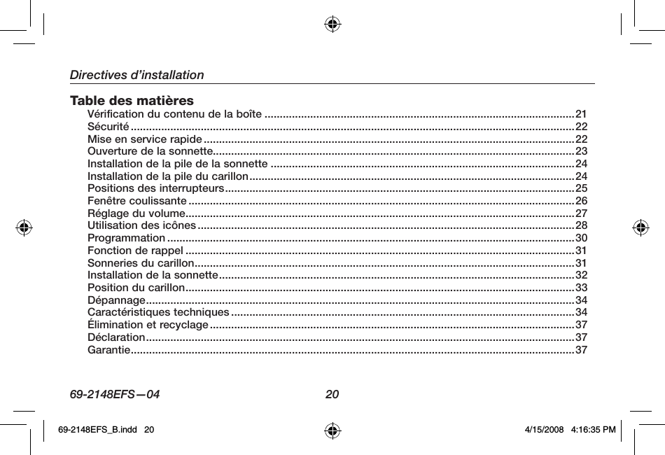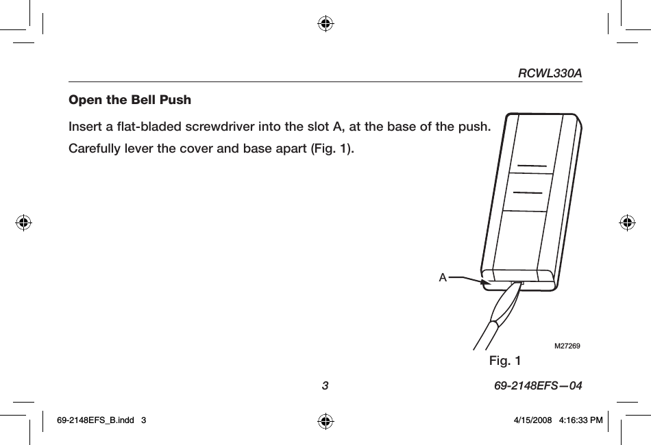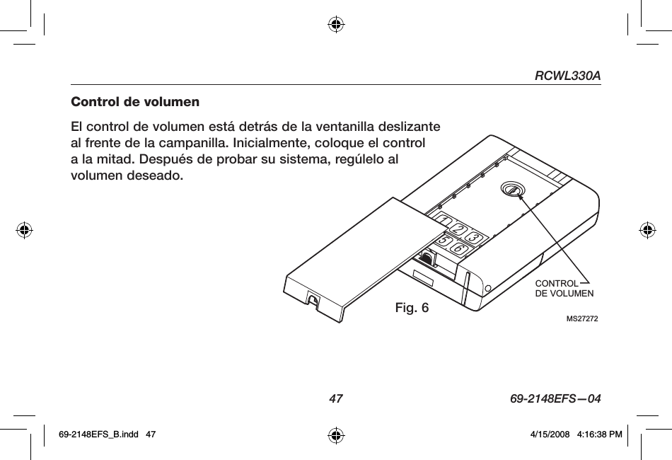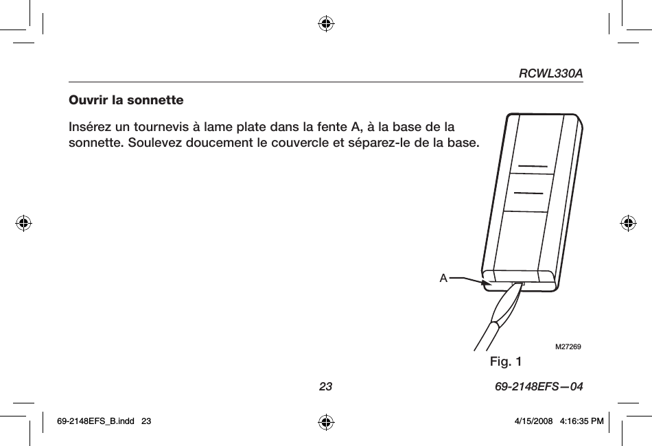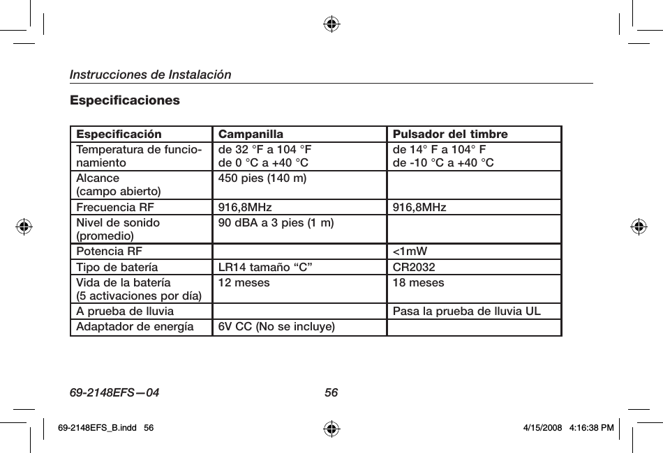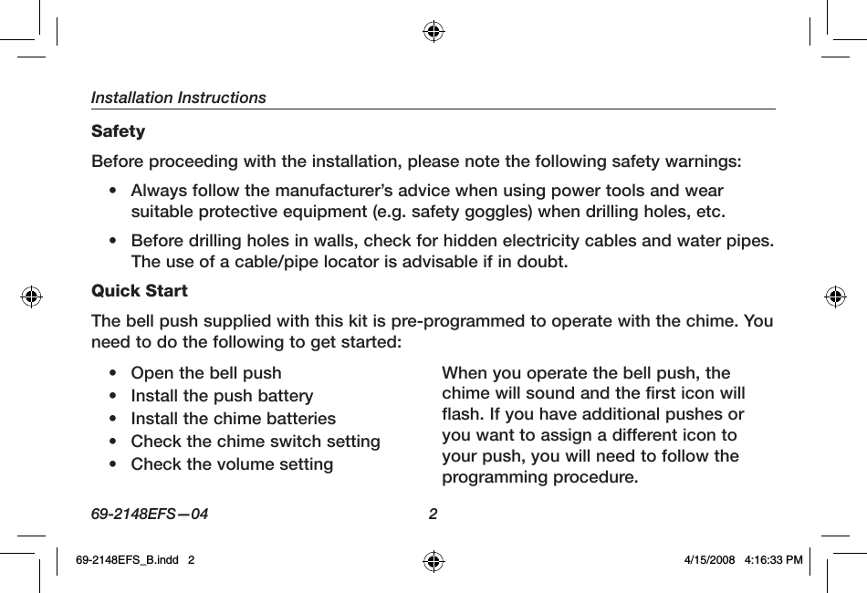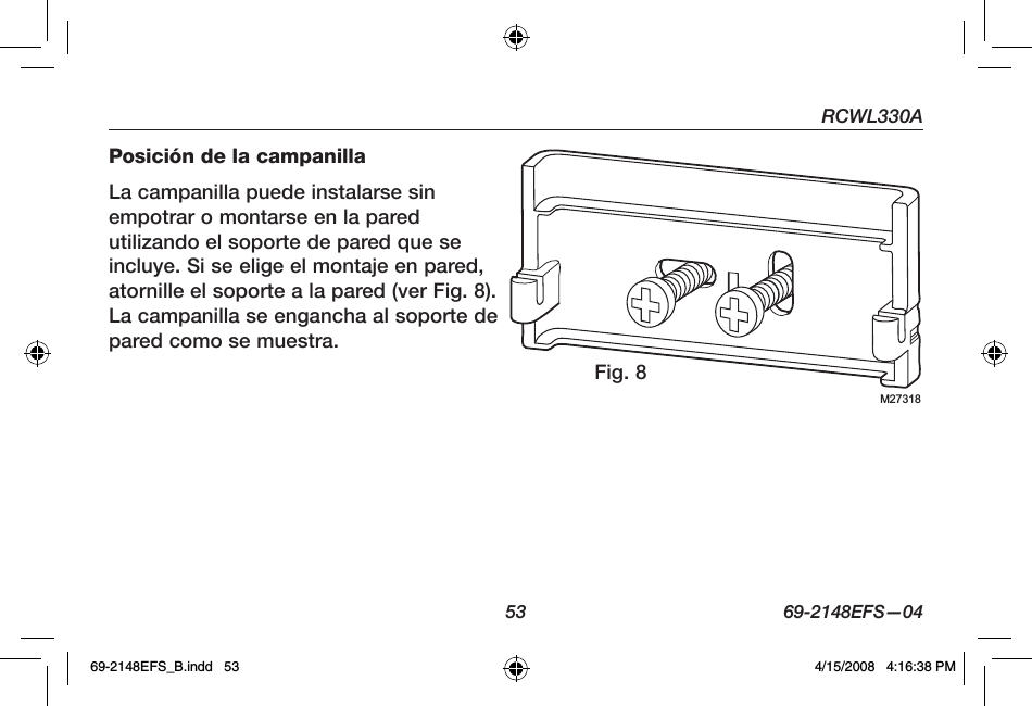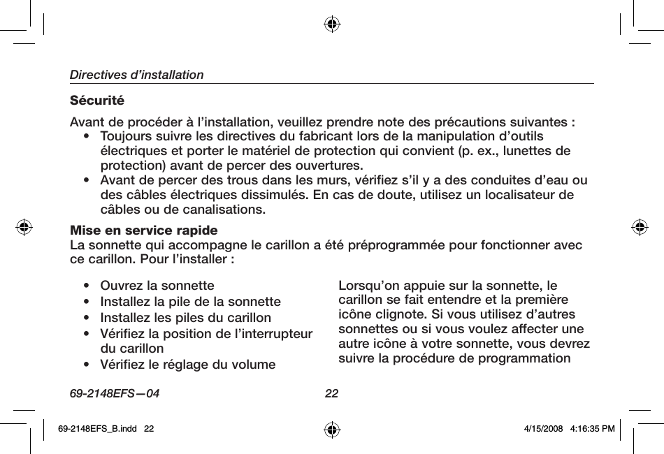 Honeywell 51459SL Premium Portable Plus Wireless Chime User Manual 69 2148EFS 04 RCWL330A
