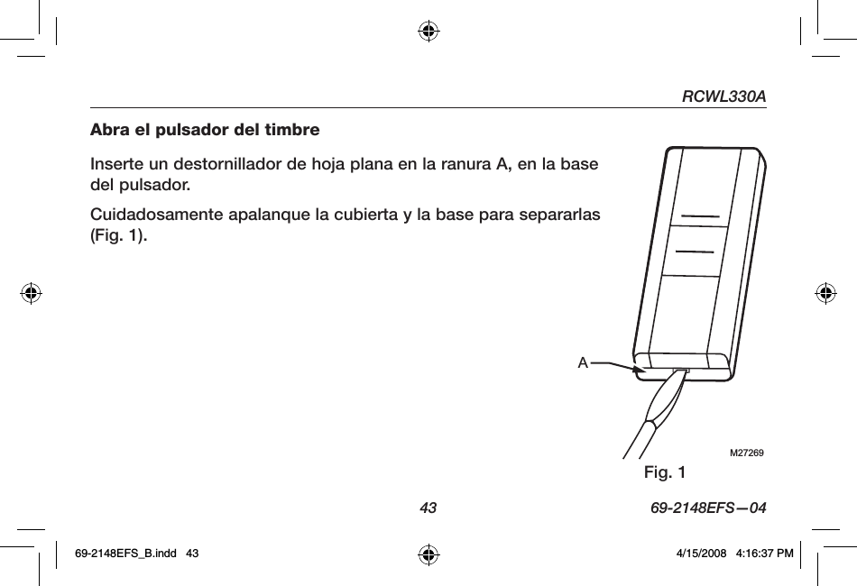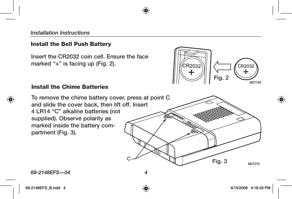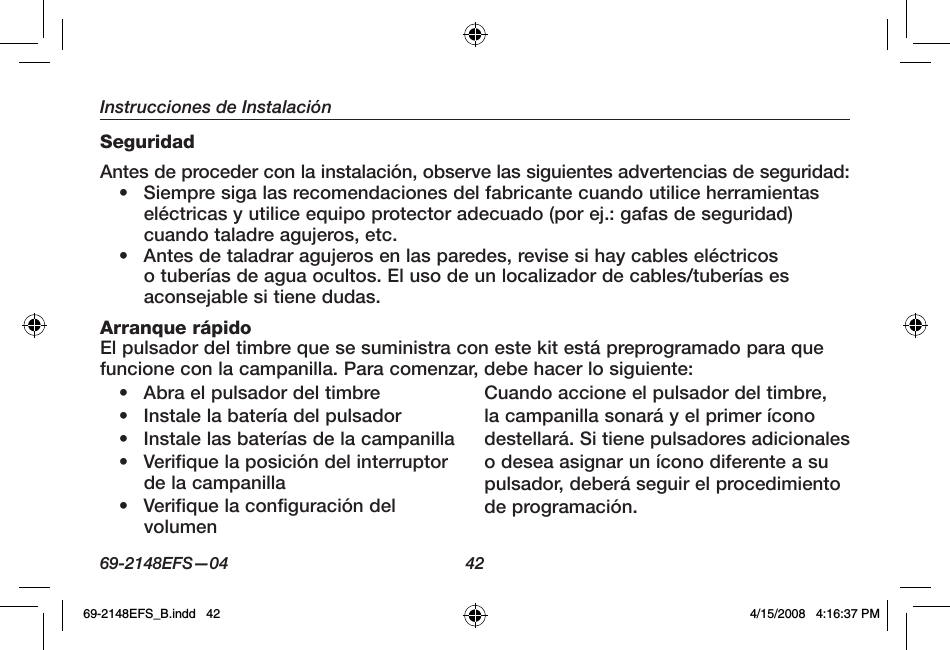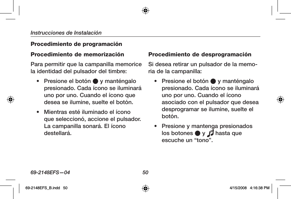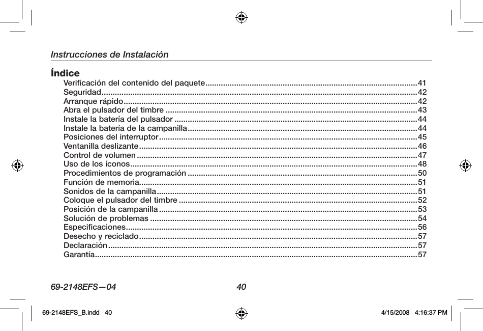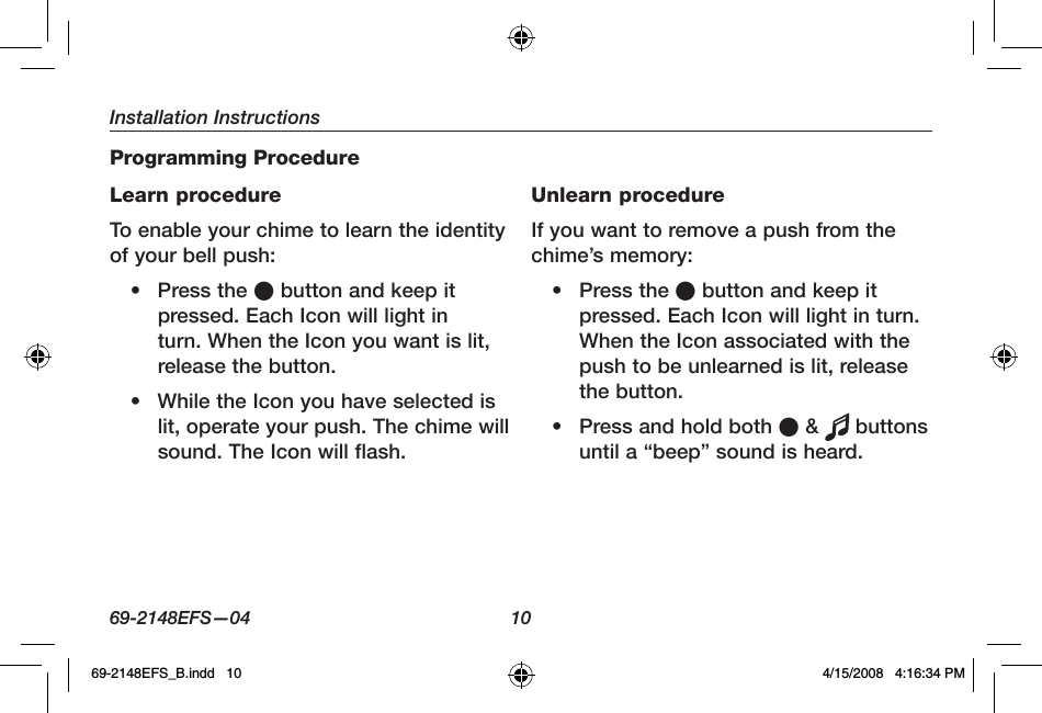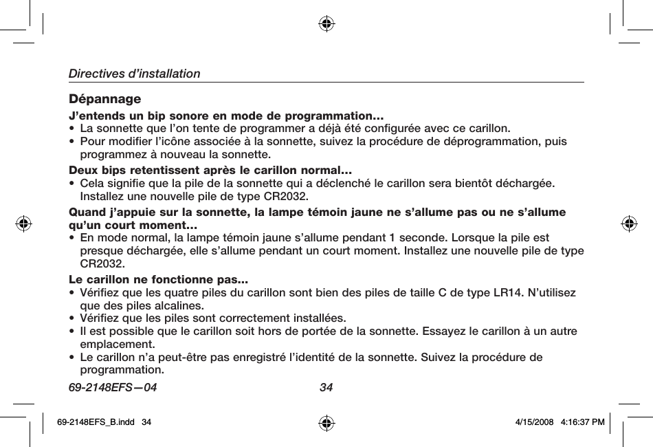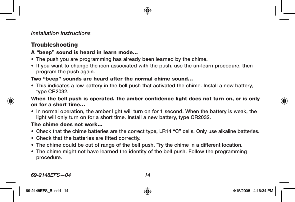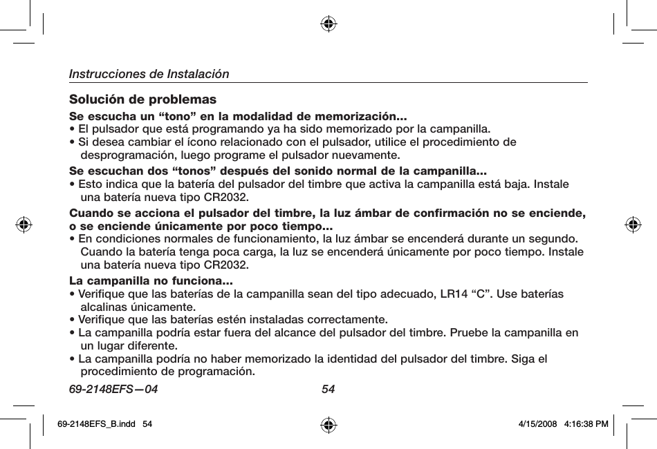 Honeywell 51459SL Premium Portable Plus Wireless Chime User Manual 69 2148EFS 04 RCWL330A