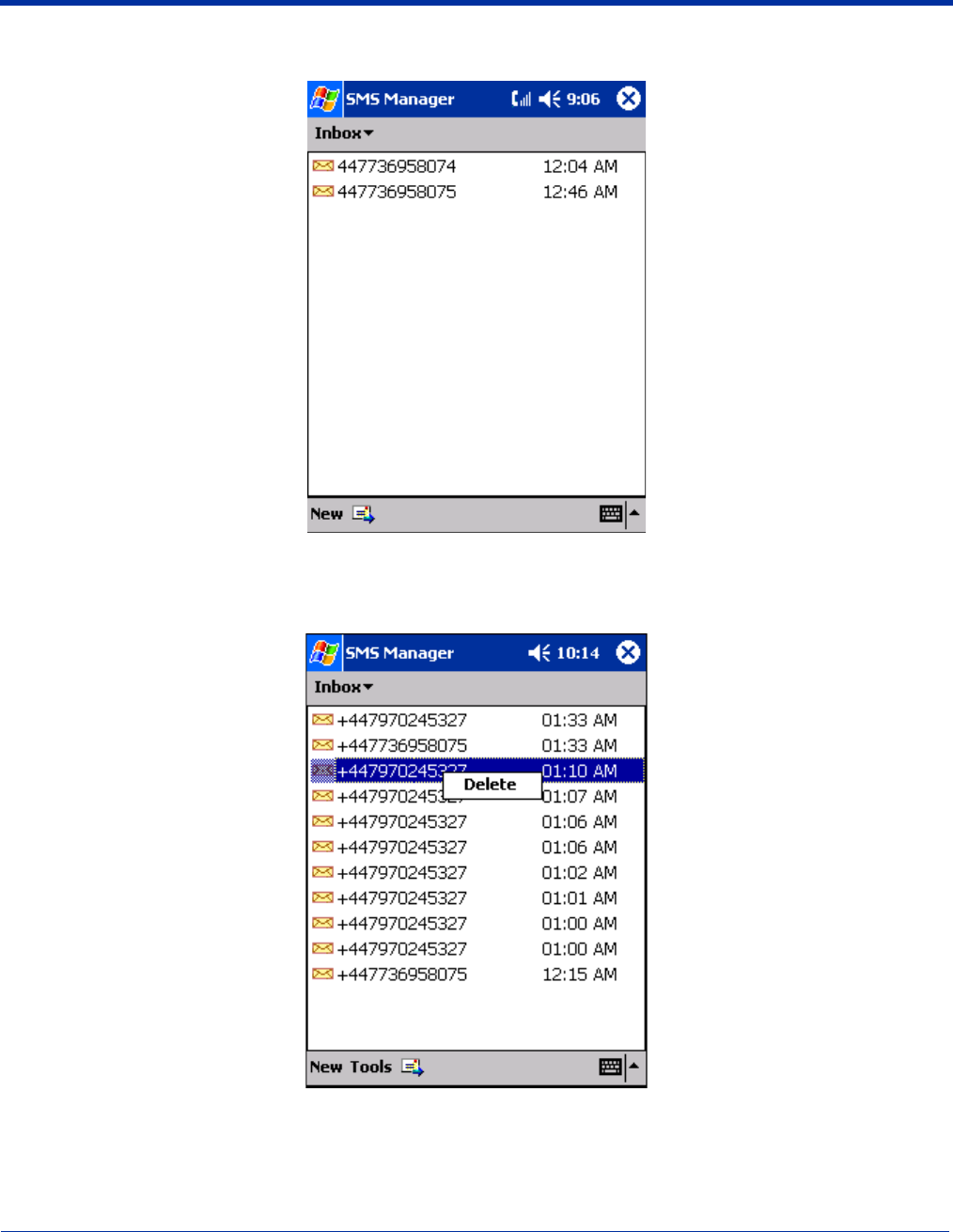 • SMS Manager provides a text message handler similar to many email programs - SMS Manager, page 11-16.