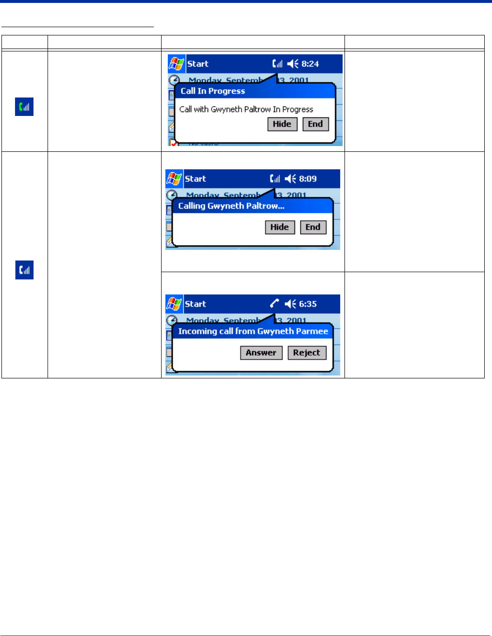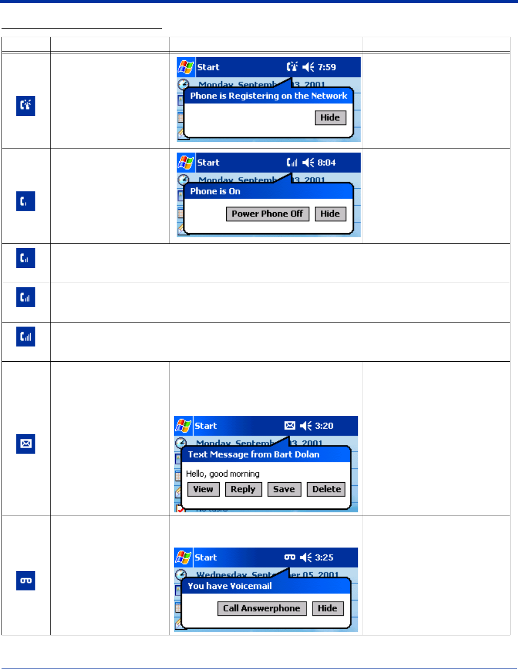 the status of the phone and messaging system. Each icon indicates s specific action and, when tapped, displays a bubble window