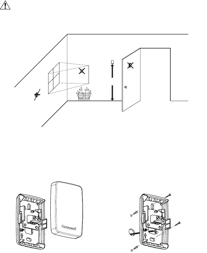Install the sensor about 5 feet (1.5m) above the floor in an area with good air circulation at average temperature.