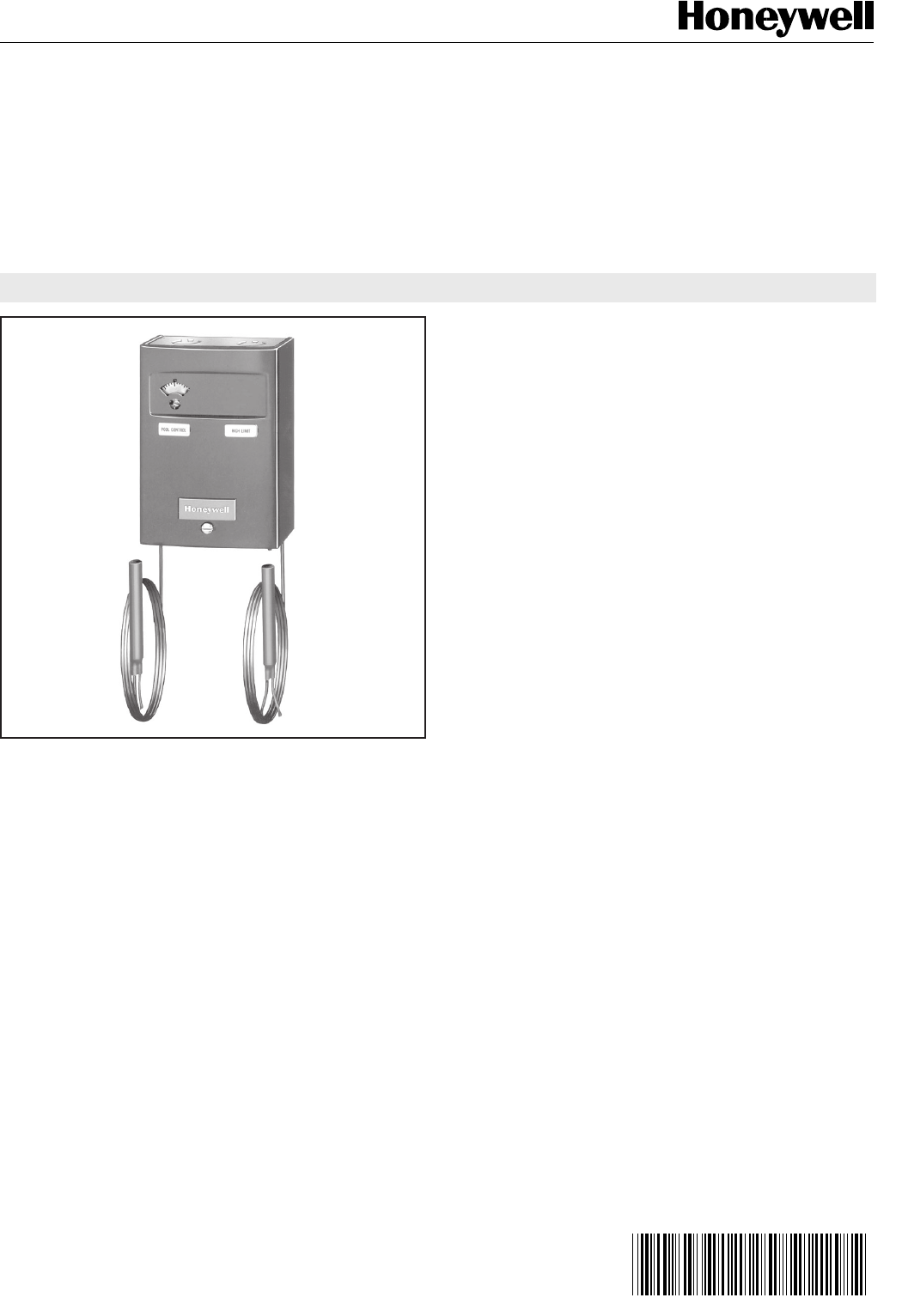 Honeywell C Users Manual 60 2107 L4031A,C Pool Heater Aquastat® Controller