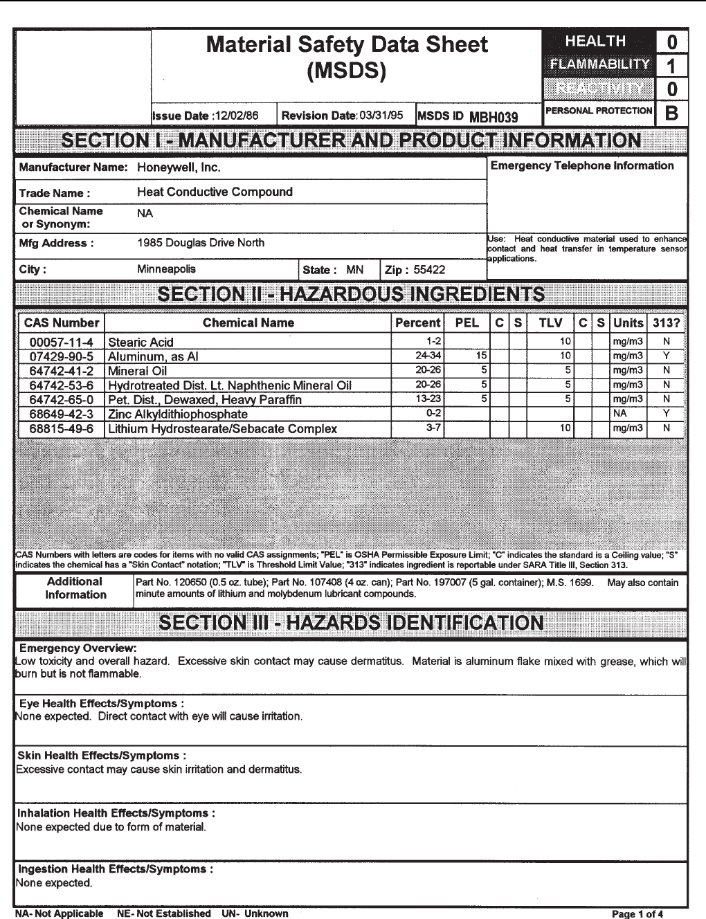 Material Safety Data Sheets ............................................... 6