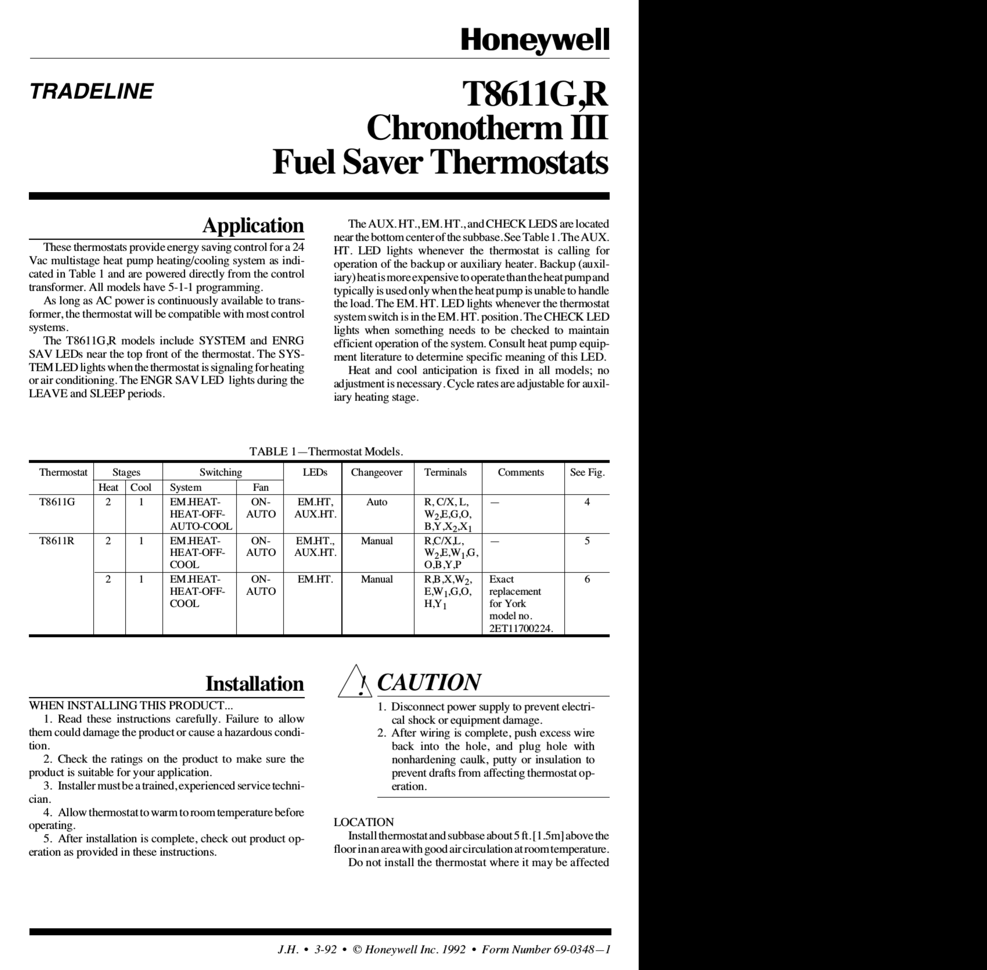 Honeywell Chronotherm Iii T8611G User Manual 1002988