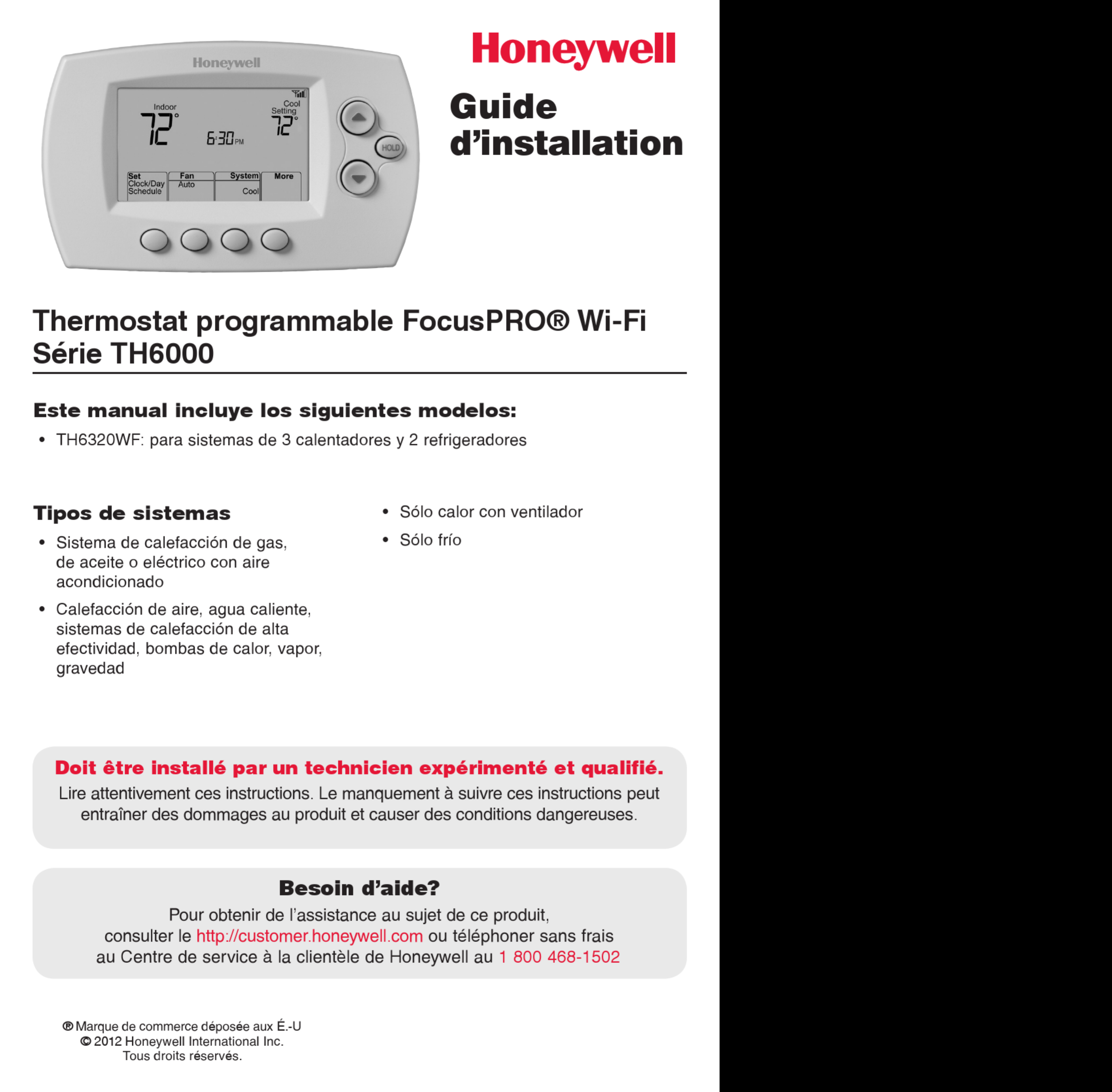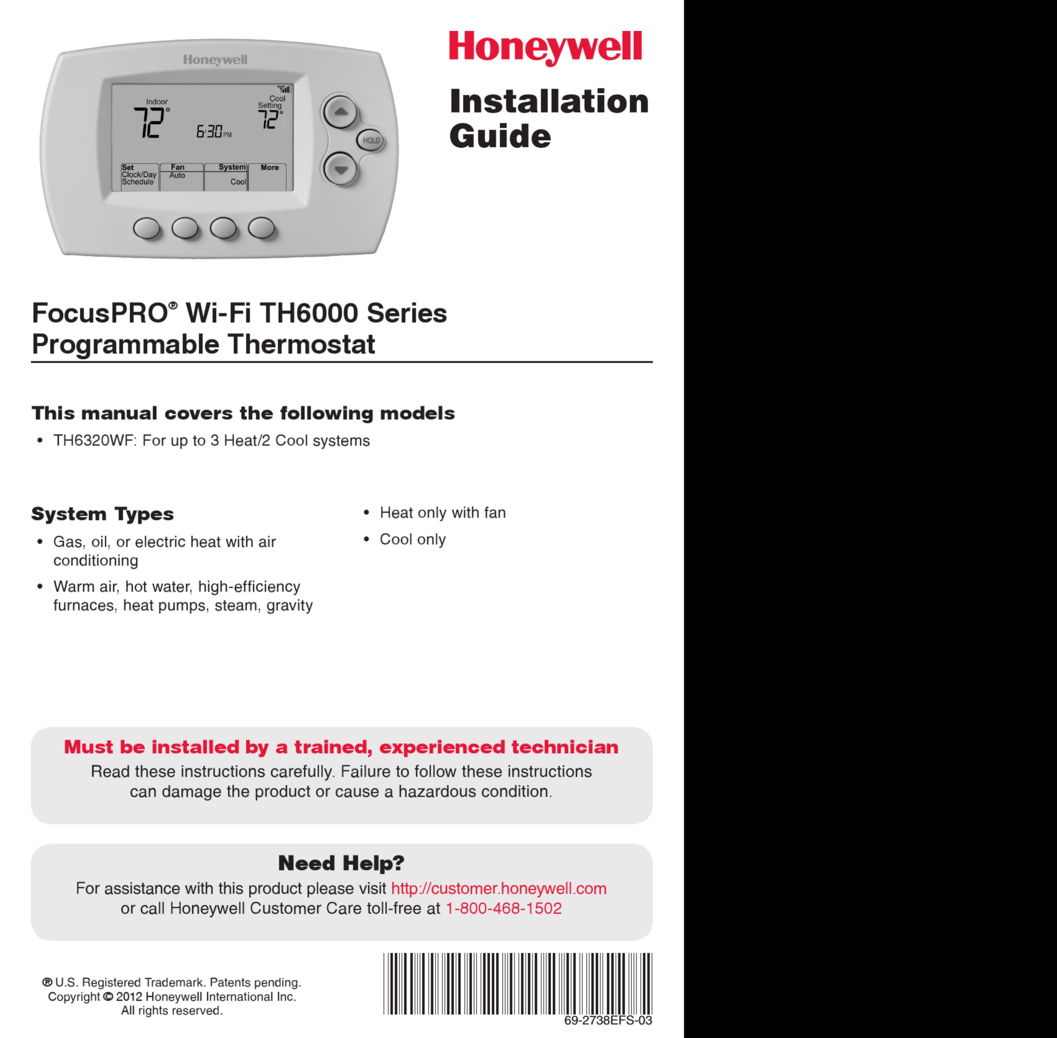 User Manual: Honeywell Honeywell-Focuspro-Th6000-Series-Installation-Manual-1002892