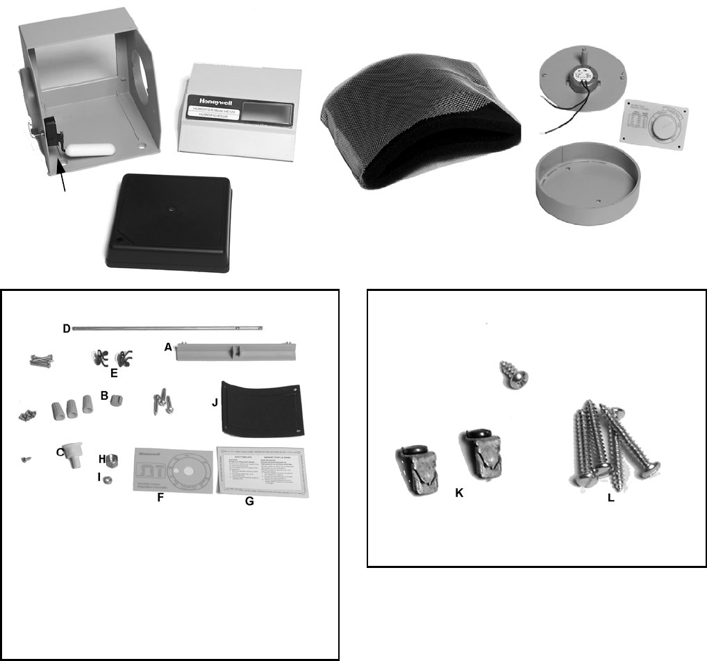 This box contains all of the parts necessary to install your new Honeywell HE120 Humidifier in most installations. Before
