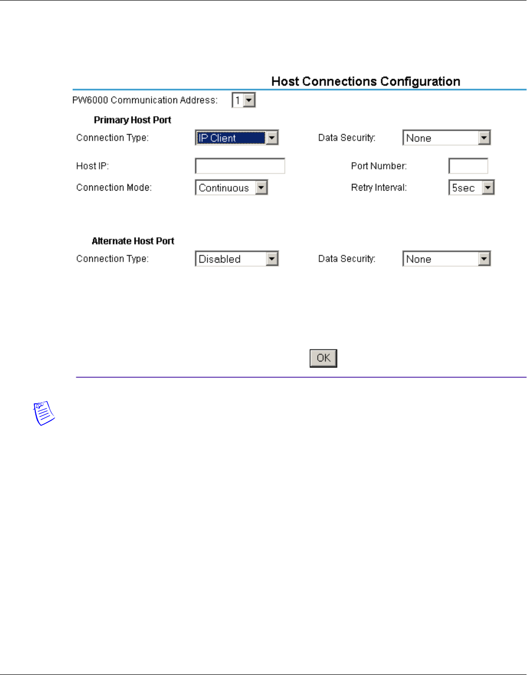 Figure 9: PW-6000 Host Port Configuration Screen with IP Client