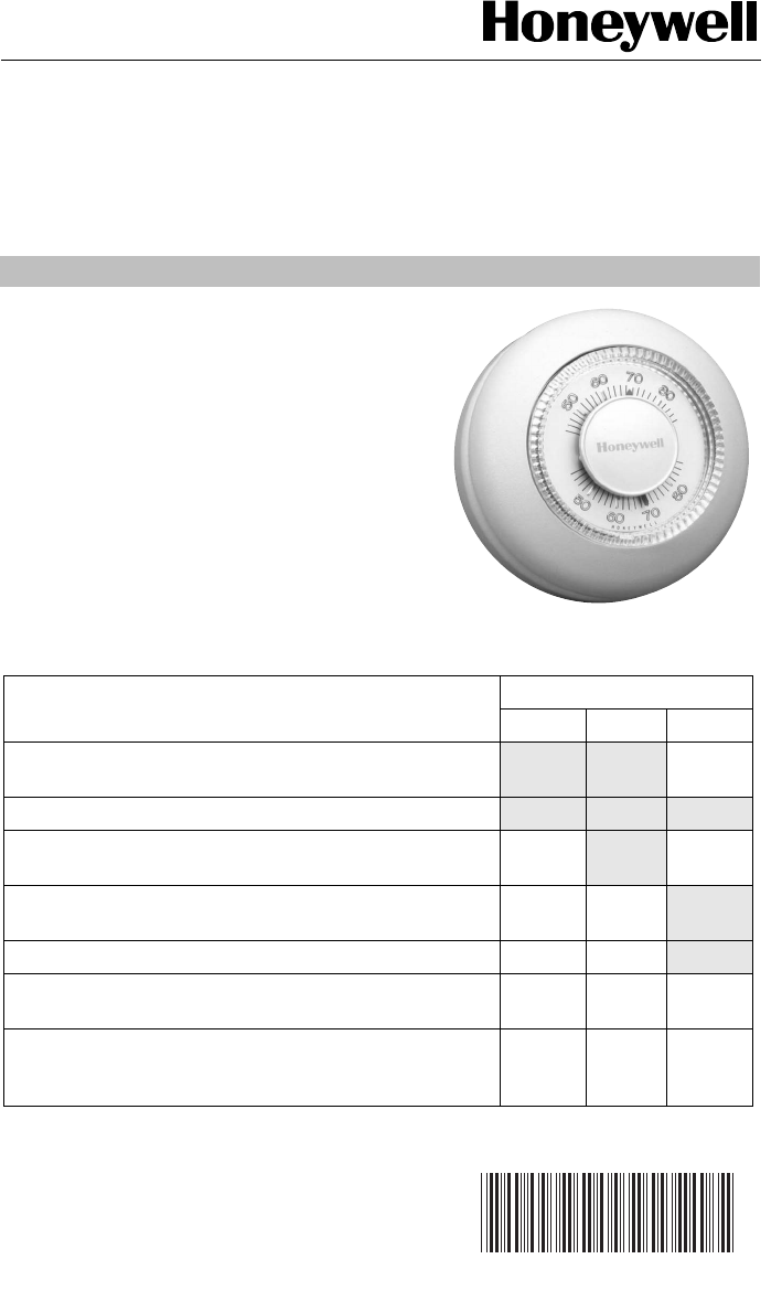 Honeywell Thermostat Ct87A Users Manual 69 0274 CT87A,B,J Round