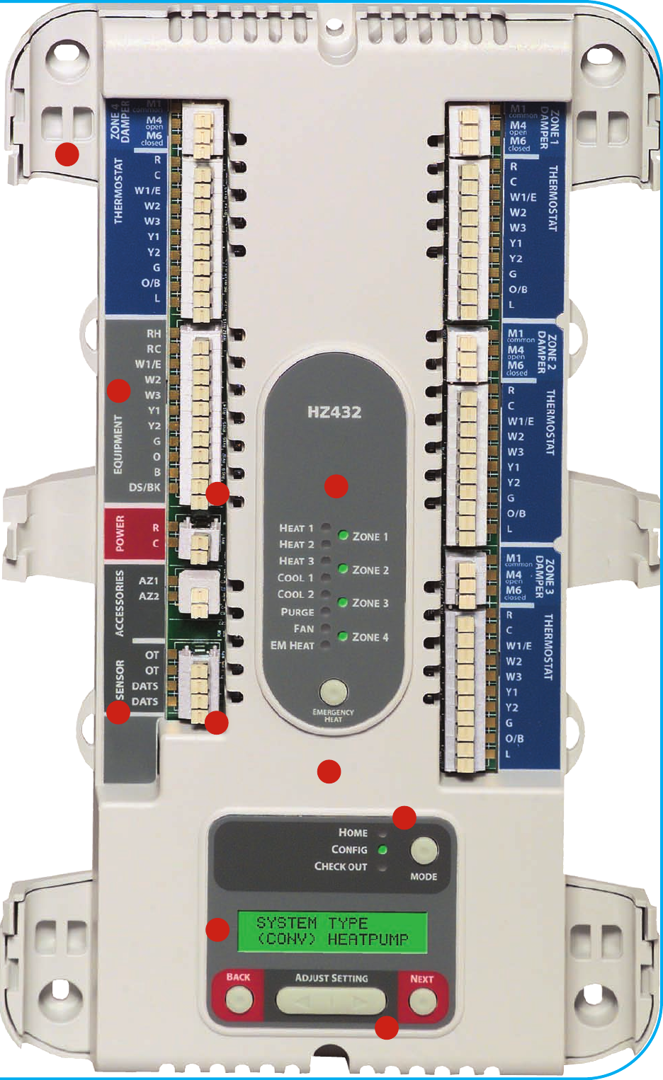 HZ432 Four zone, 3H/2C panel used for conventional, heat pump or dual fuel systems