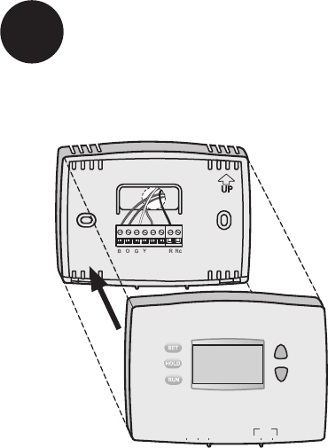 Remove wallplate from the new thermostat and mount