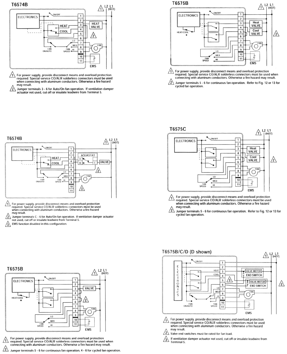 T6570 Series Digital Fan-Coil thermostats provide line voltage