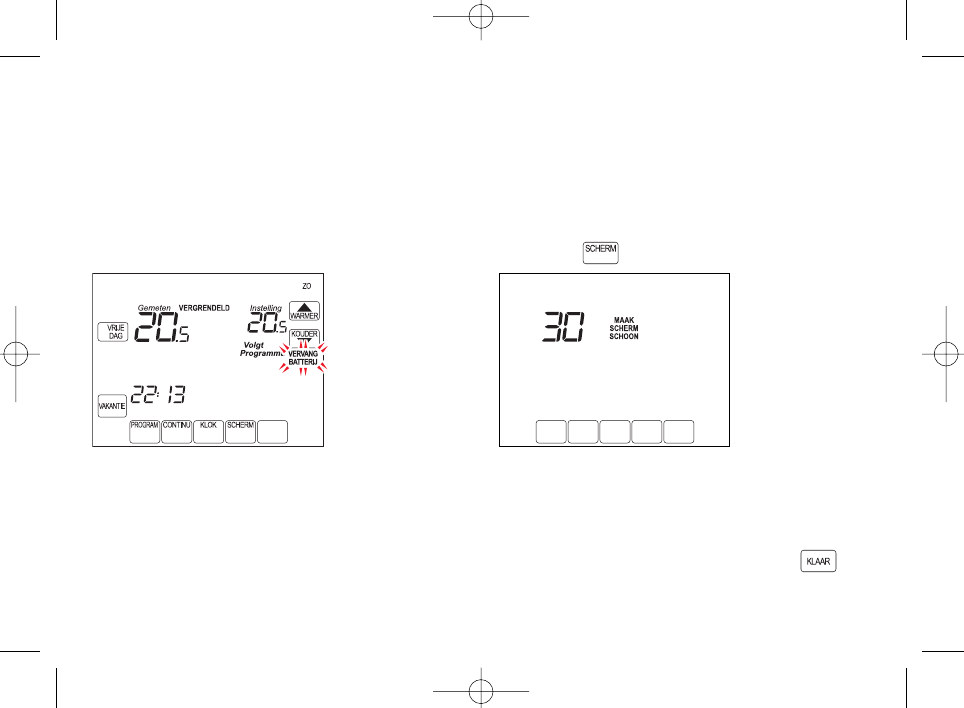 - Indien het scherm leeg is of knipperend de tekst VERVANG BATTERIJ