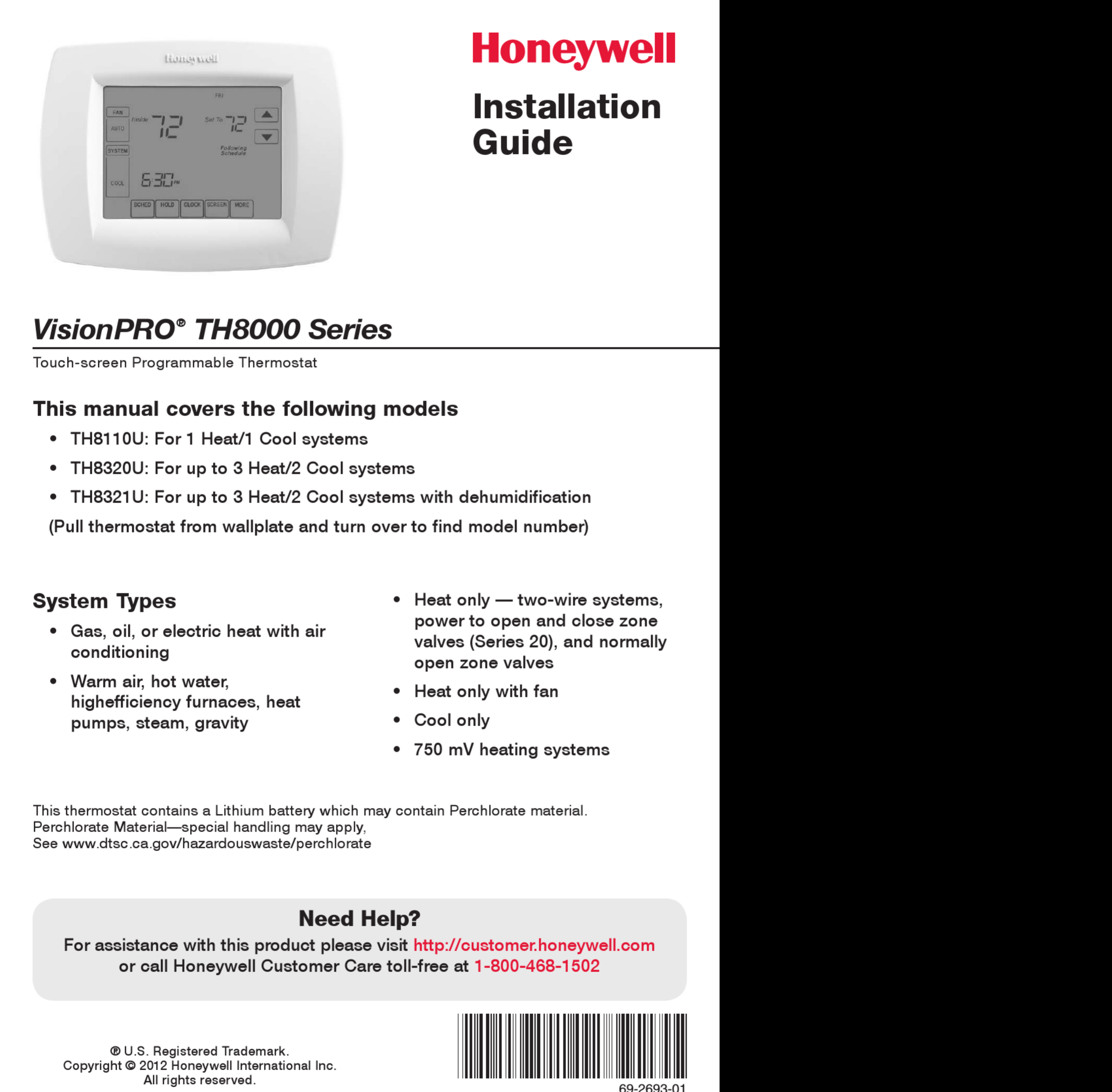 User Manual: Honeywell Honeywell-Visionpro-Th8000-Series-Installation-Manual-1003127