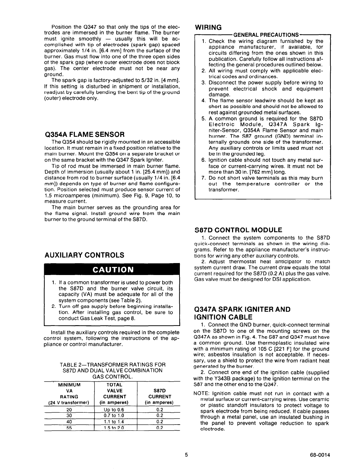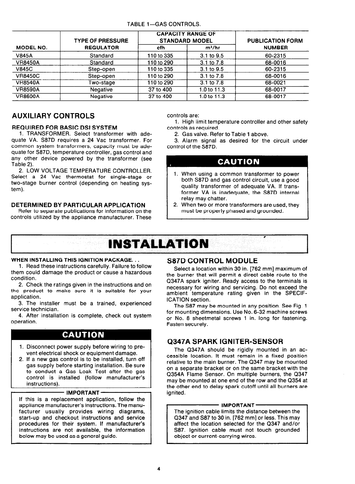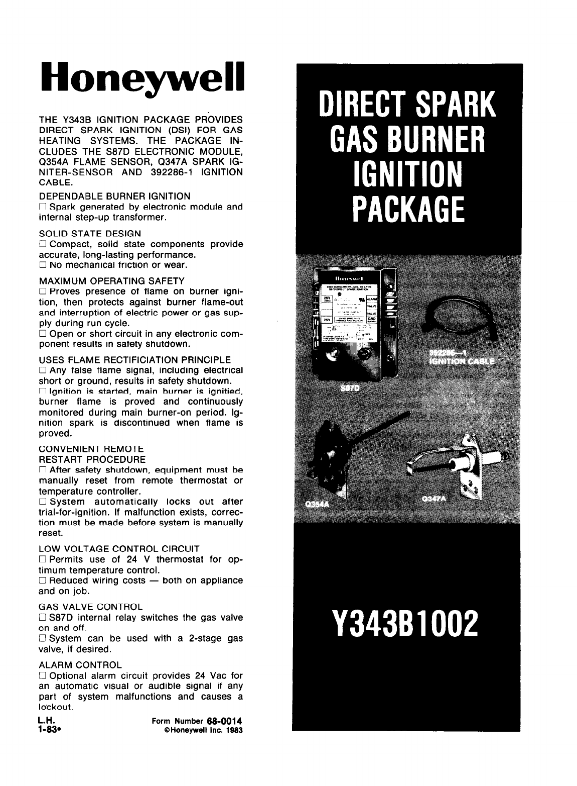 Honeywell Y343B1002 Users Manual 68 0014 Direct Spark Gas Burner Ignition Package