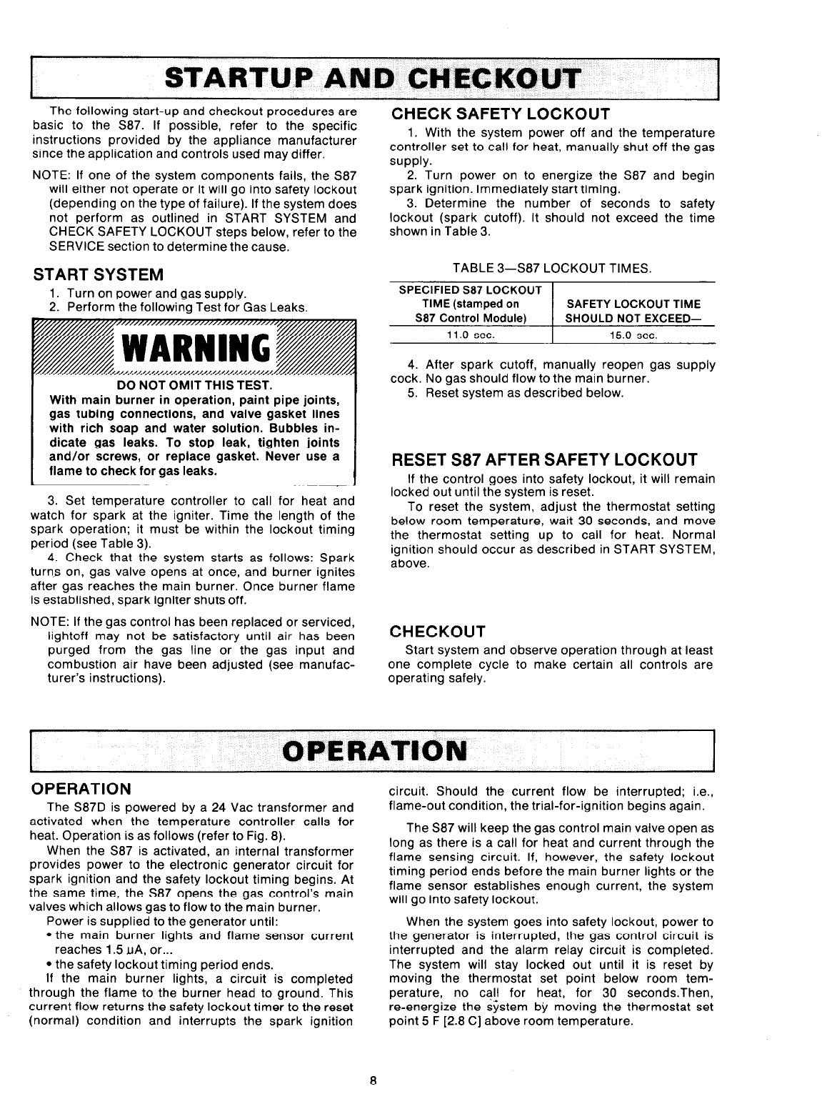 checked  directly  on  the  S87D.  Check  the  flame  sensing
