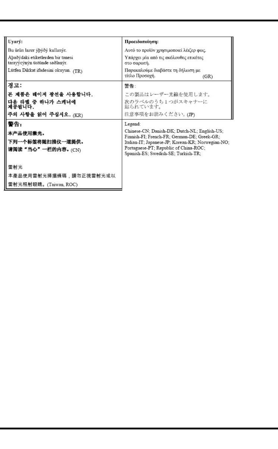Waarschuwing: Dit product gebruikt laserlicht. Een van de volgende labels is op de scanner aangebracht.