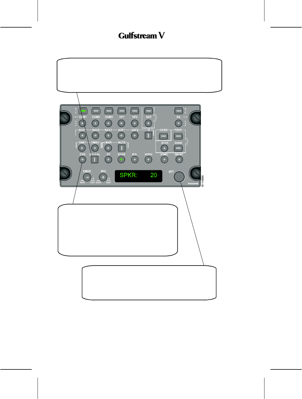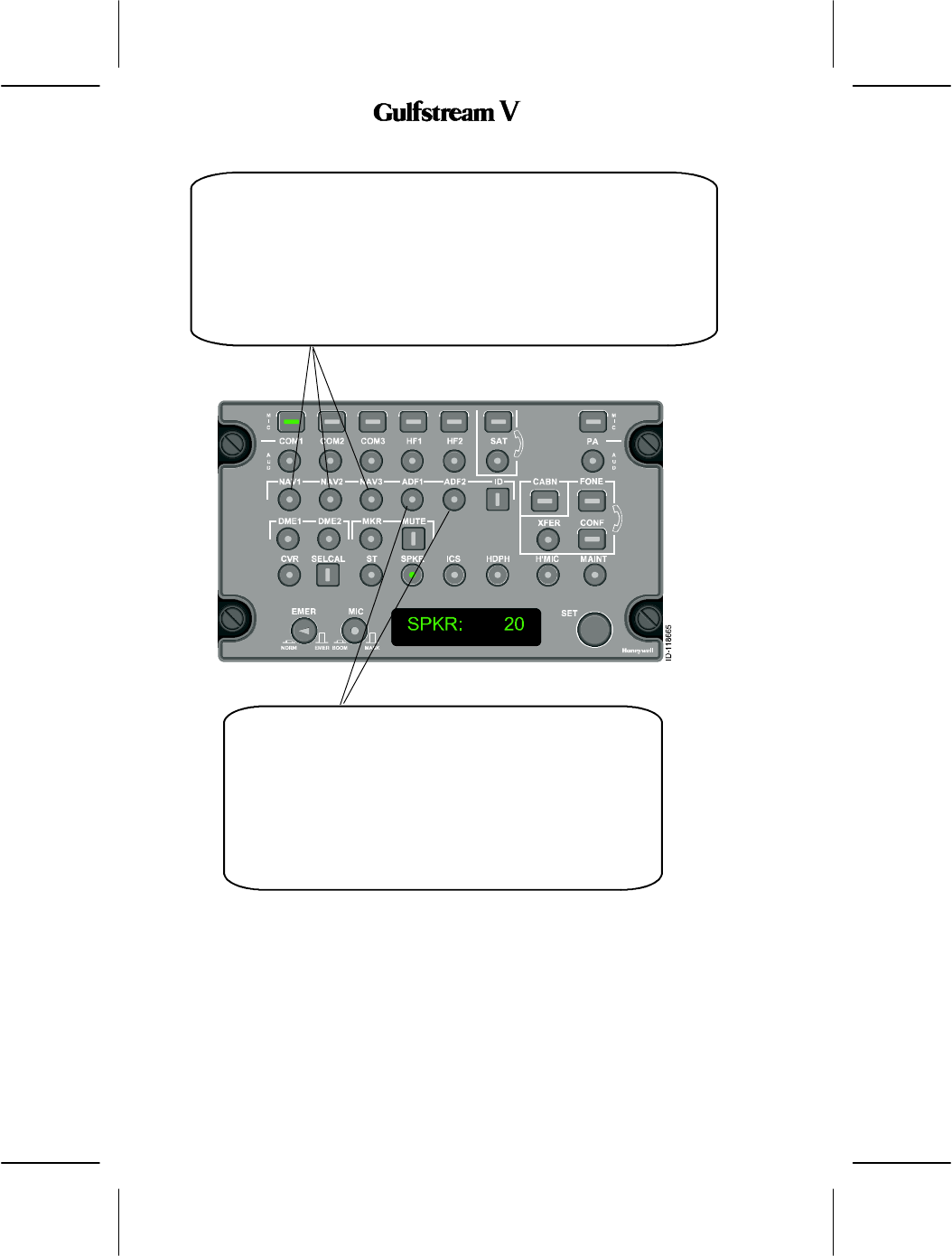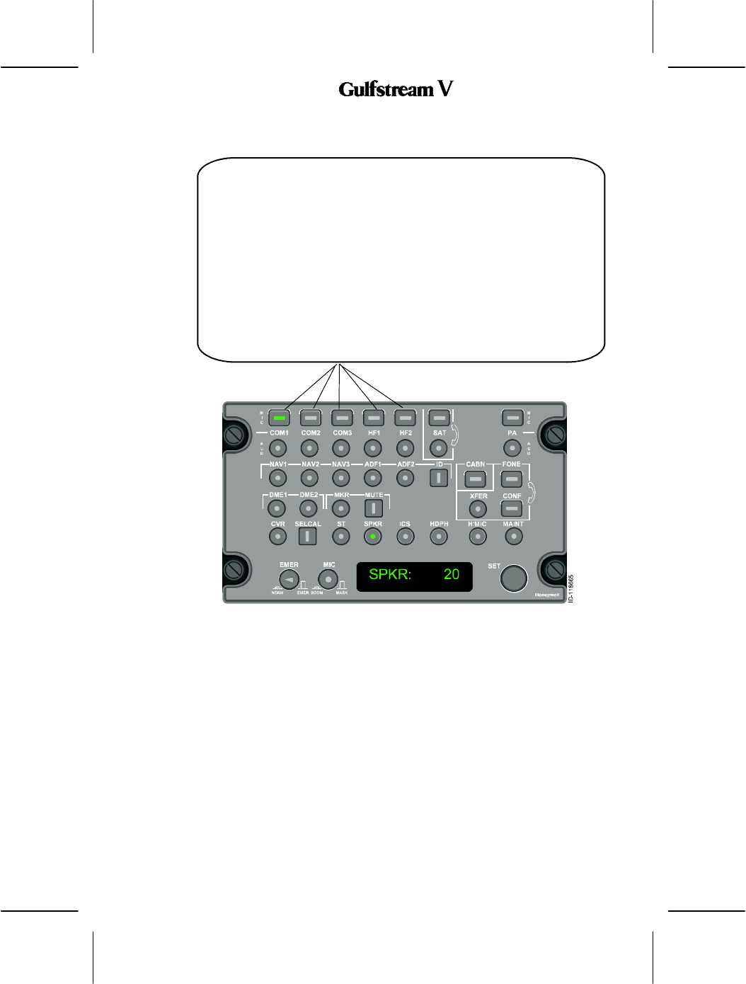 The audio panel controls audio and transmission to the following: