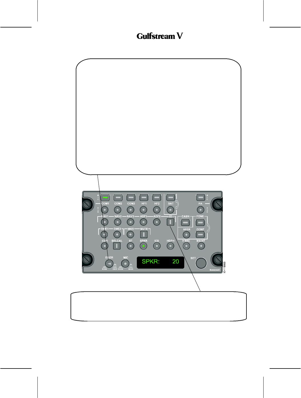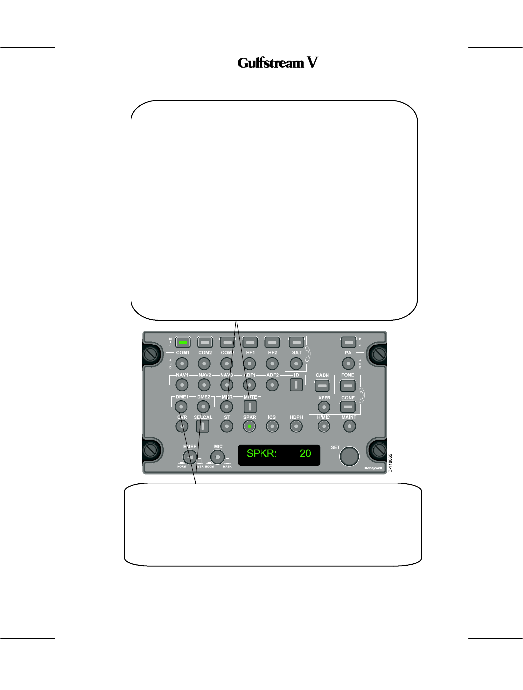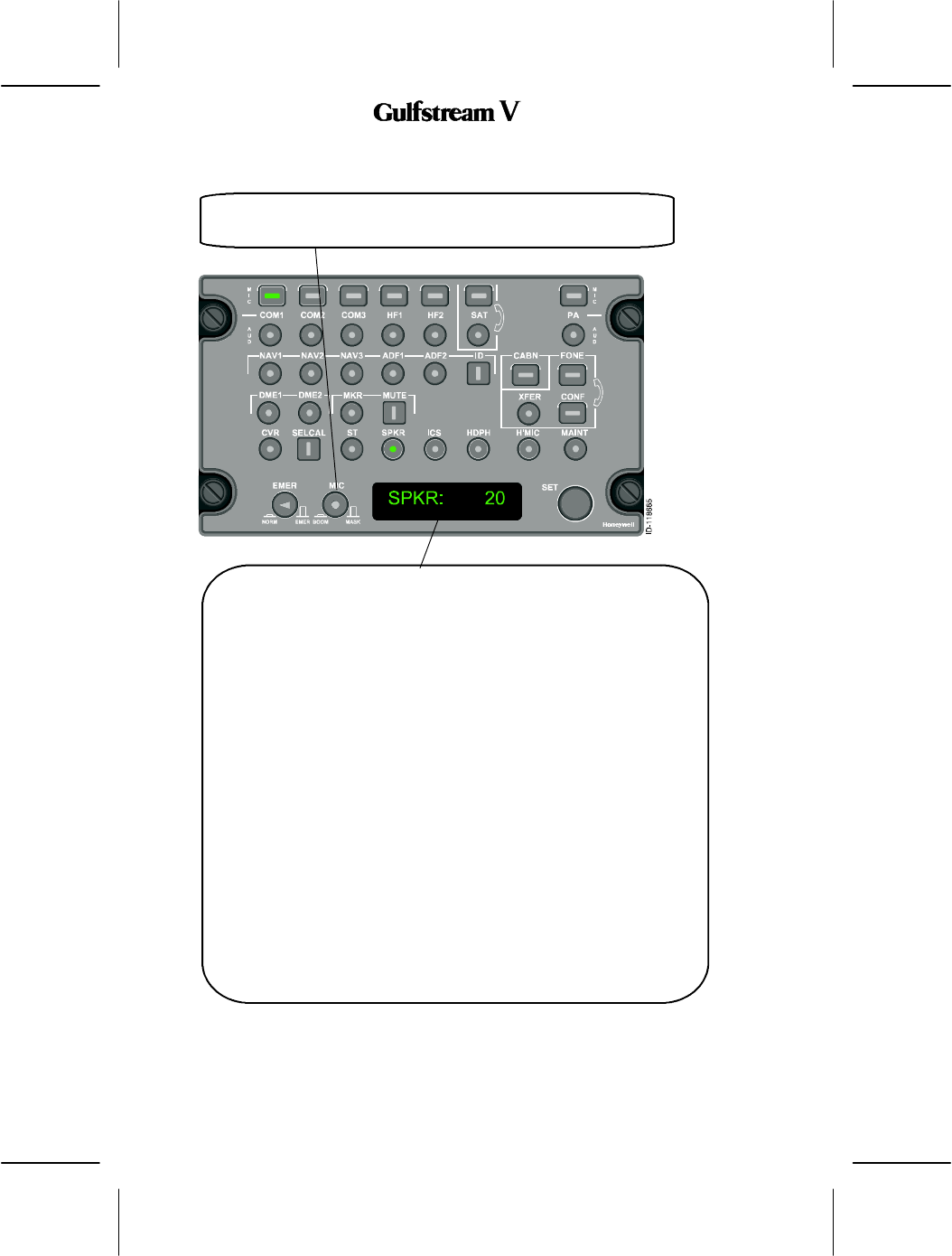 The audio panel controls audio and transmission to the following: