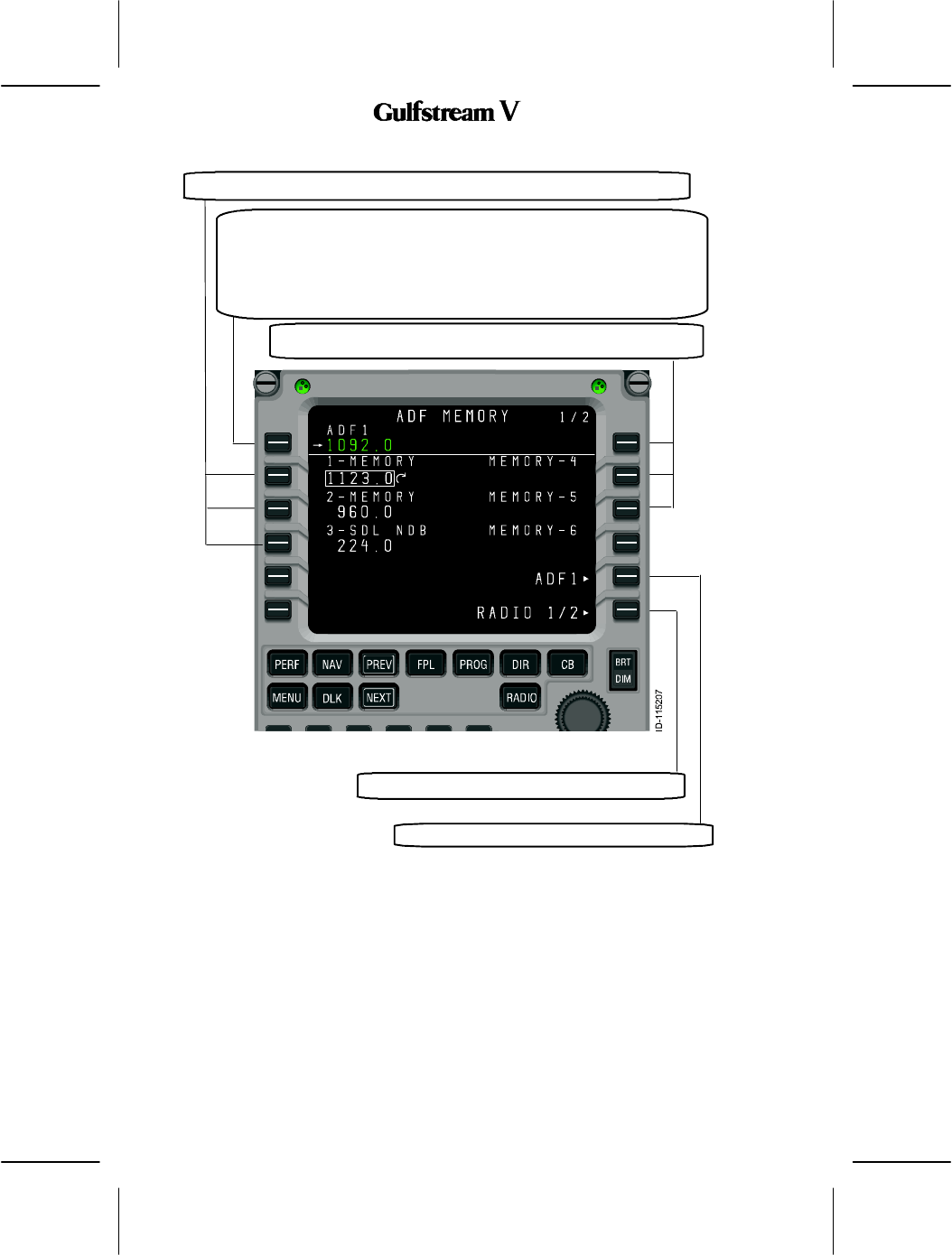 on the outboard edge of the display. The ADF Memory page is described below.
