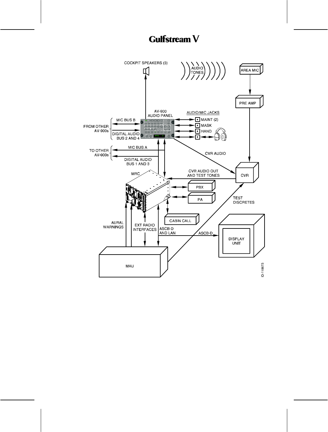 is received on the digital audio buses from the MRC radio cabinet. The audio panel decodes,