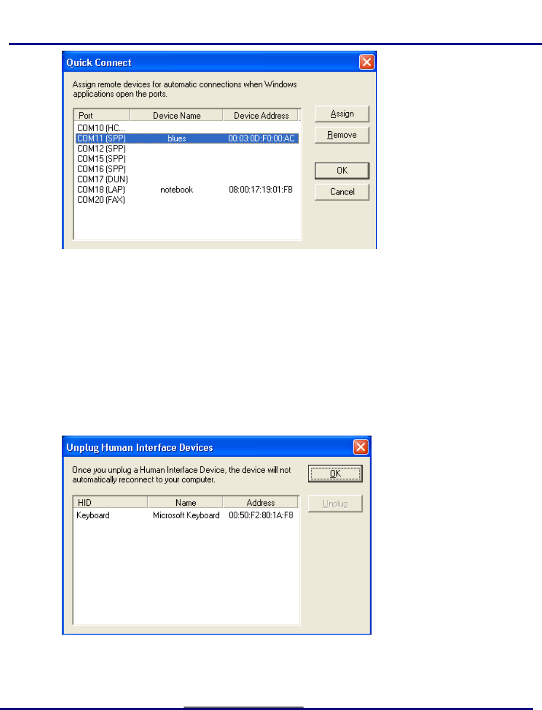 In the My Bluetooth Device dialog box, there are device names, device addresses,