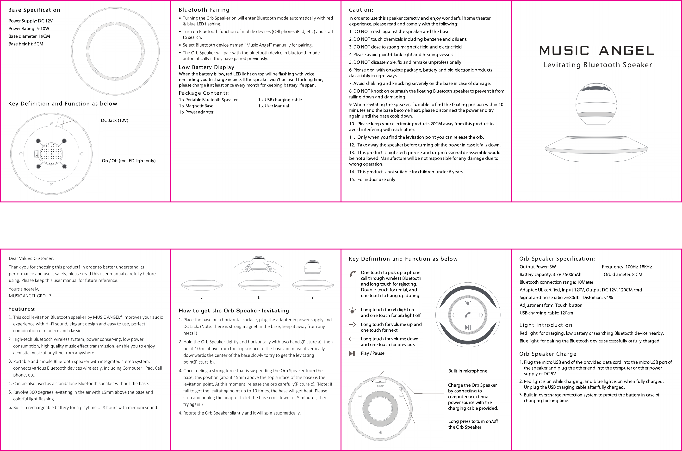 HongWeiDaYe Electronics WB-46 Levitating Bluetooth Speaker User Manual