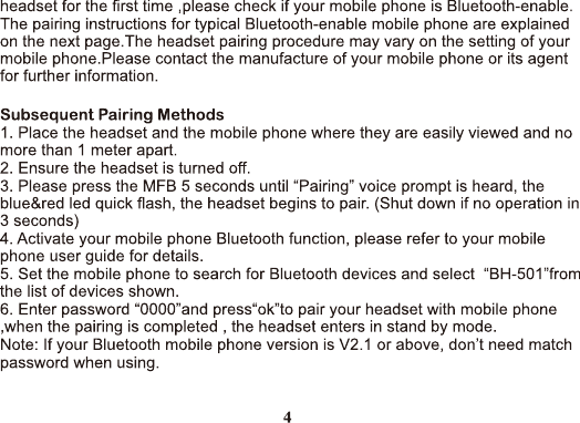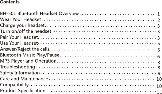 Hongnanke Communication Equipment BH-501 Bluetooth Stereo Headset User Manual 1