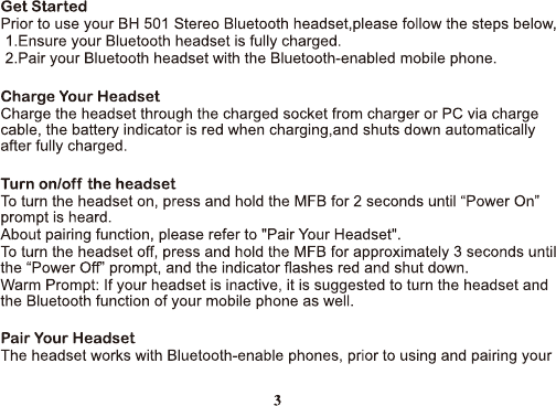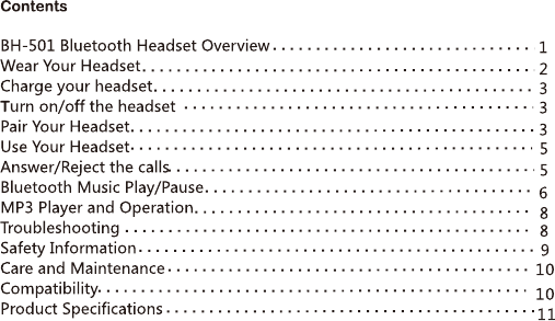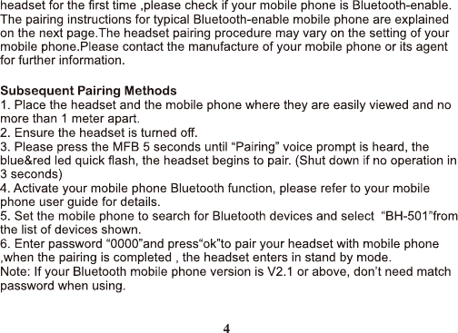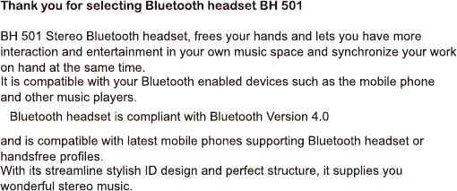 Hongnanke Communication Equipment BH-501 Bluetooth Stereo Headset User Manual 1