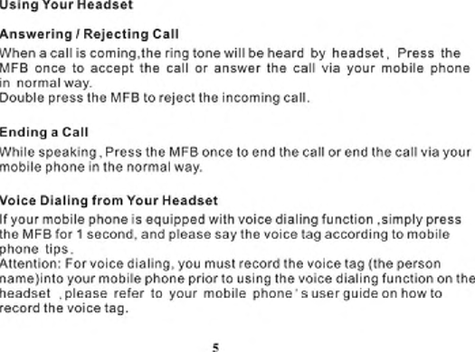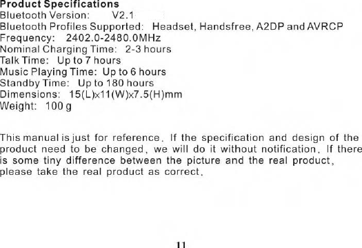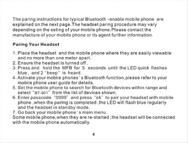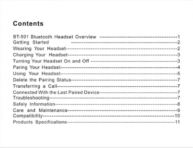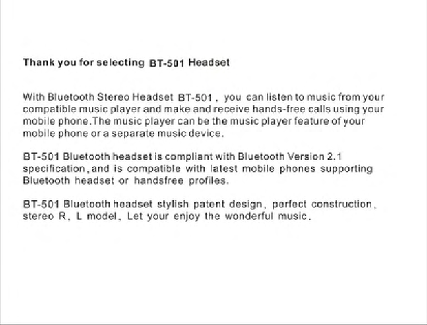 Hongnanke Communication Equipment BT-501 Bluetooth Stereo Headset User Manual