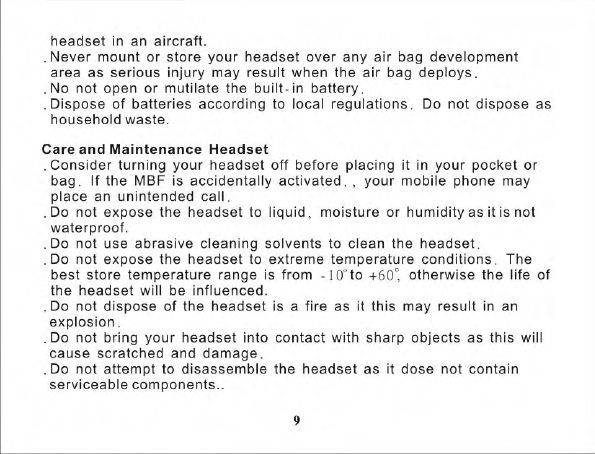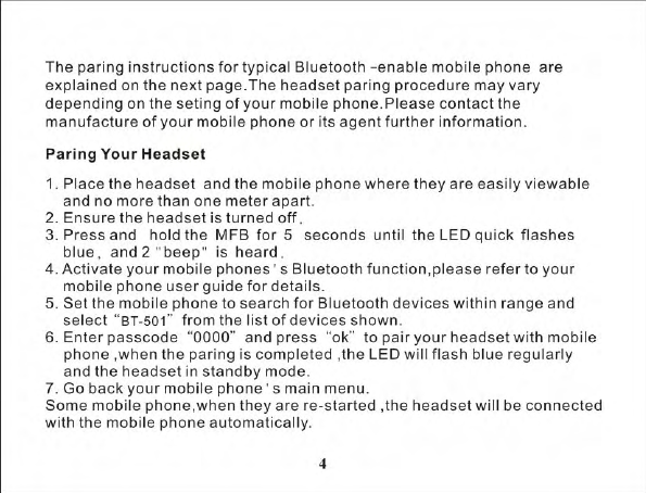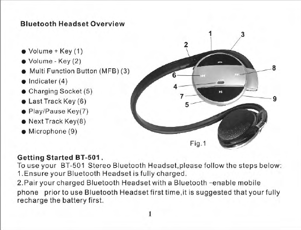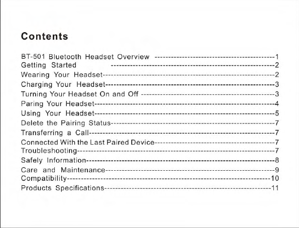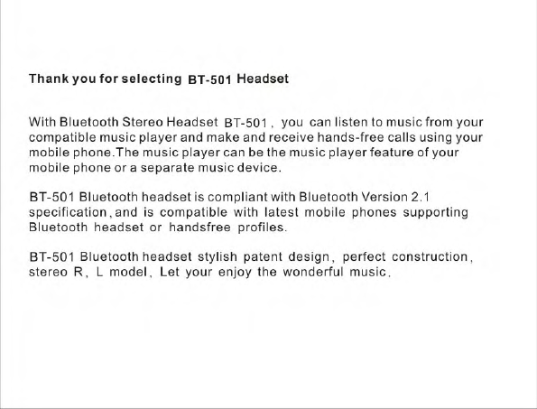 Hongnanke Communication Equipment BT-501 Bluetooth Stereo Headset User Manual