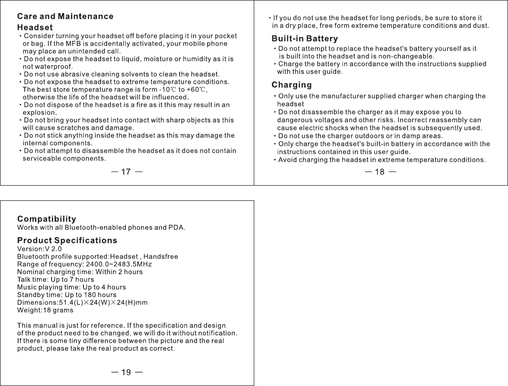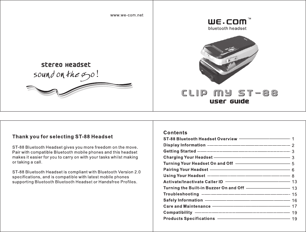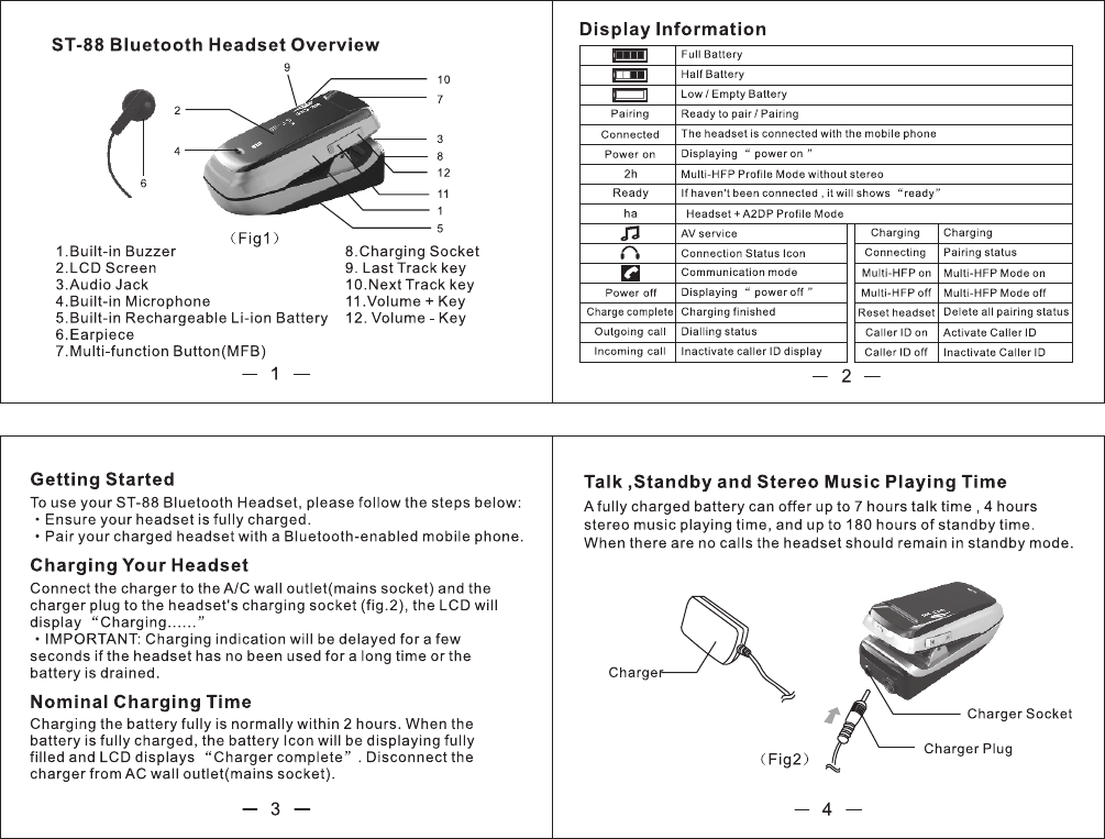 Hongnanke Communication Equipment ST-88 BLUETOOTH STEREO HEADSET User Manual Doc3