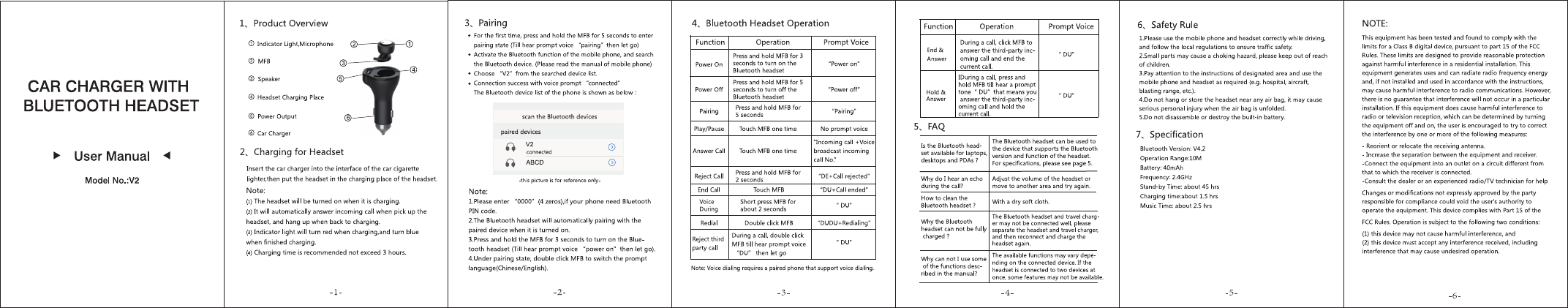Hongnanke Communication Equipment V2 Bluetooth Headset User Manual