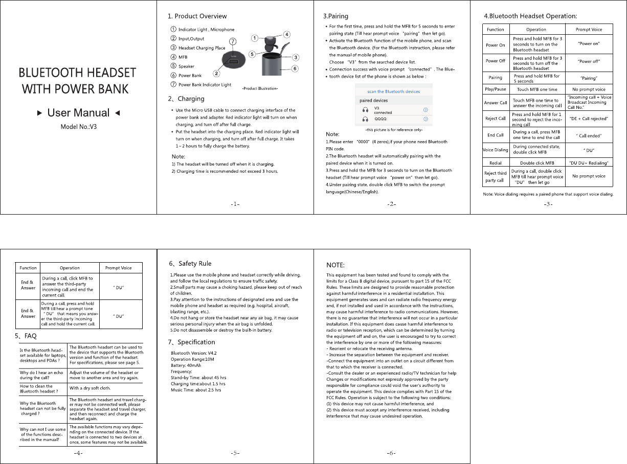 Hongnanke Communication Equipment V3 Bluetooth Headset User Manual