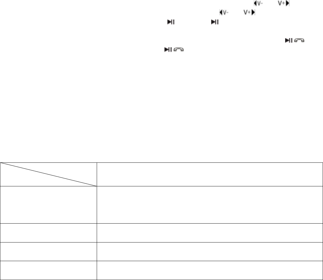 /:/play/pause/ Pick up the call/hang up the call: Press this button to pause, to resume normal operation or pick up