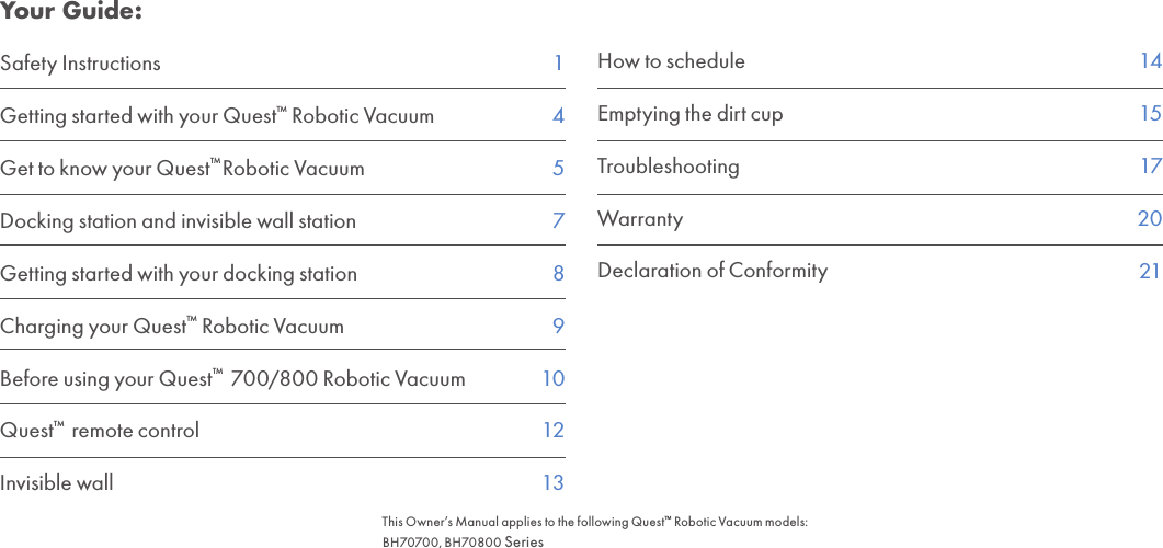 Hoover BH70800 Robotic Vacuum cleaner User Manual Manual