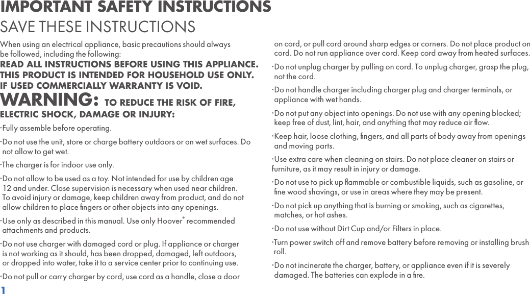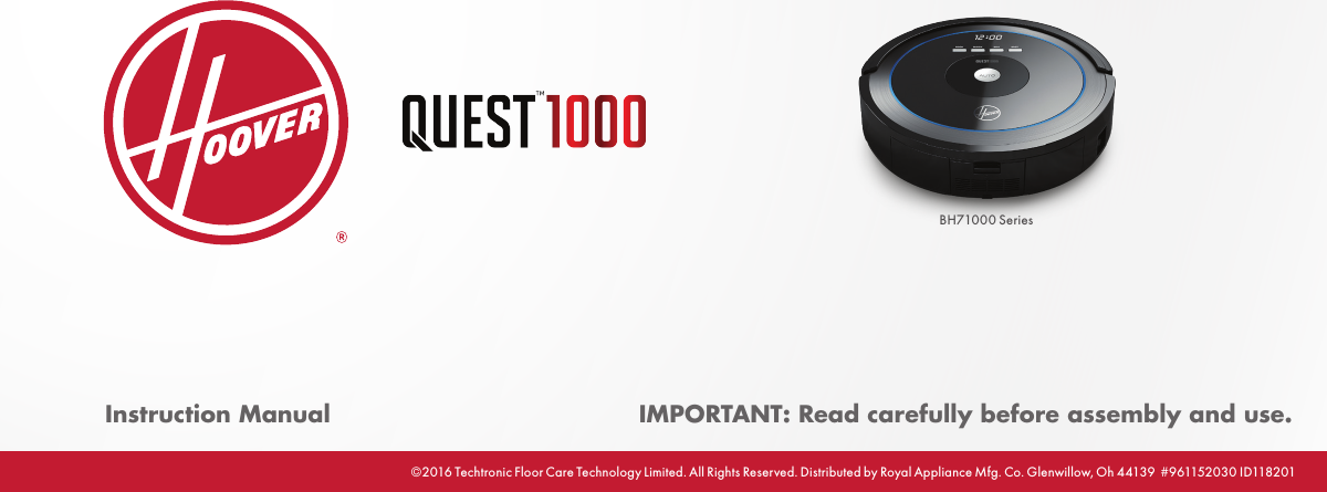 Hoover BH71000 Hoover Series 1000 robotic vacuum User Manual