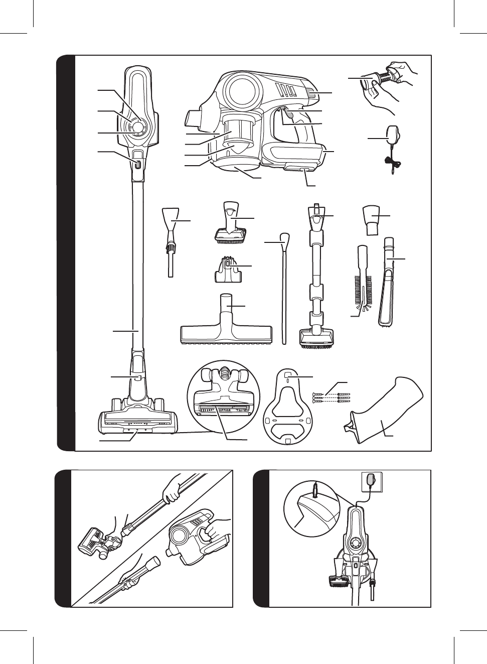 dusting brush, 2in1 large dusting & crevice and mini turbo nozzle (when included).
