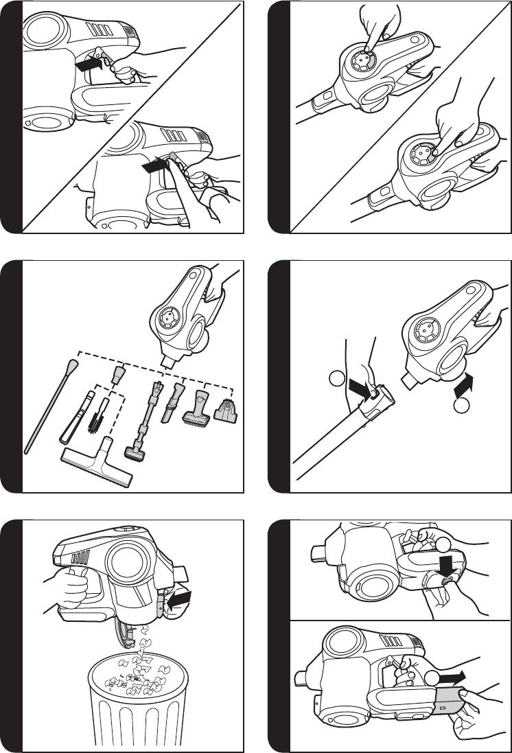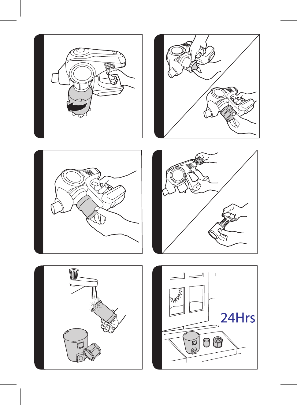 9. Wash the dust cup/HSpin-Core Technology mesh lter cover in lukewarm water. Ensure it is fully dry before