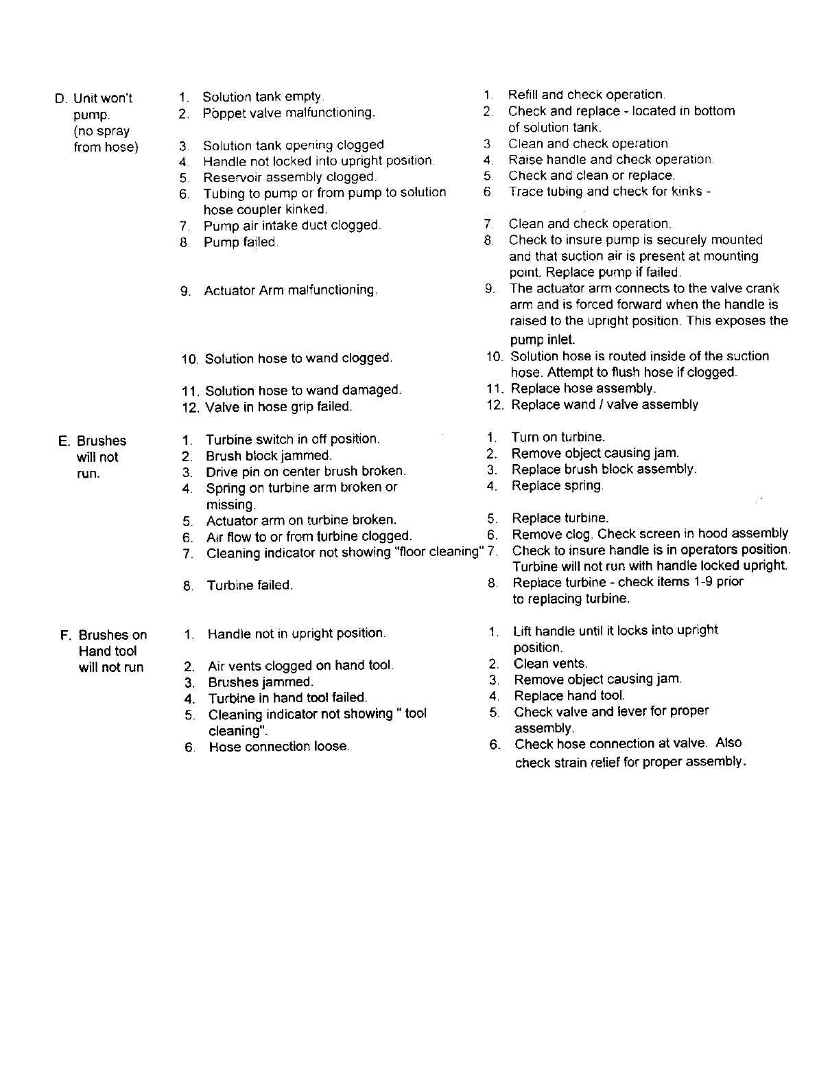 7. Cleaning indicator not showing "floor cleaning" 7.