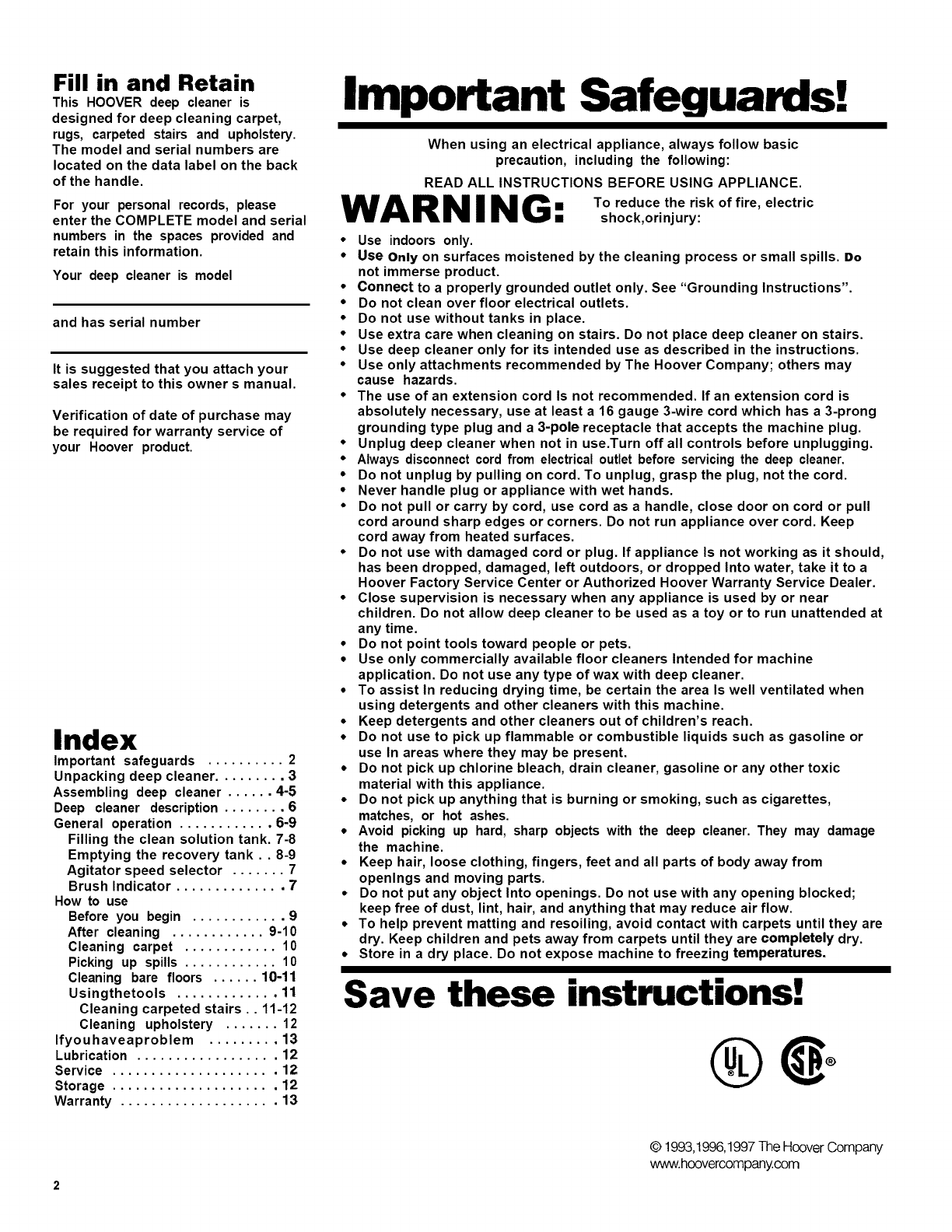 HOOVER Owner's