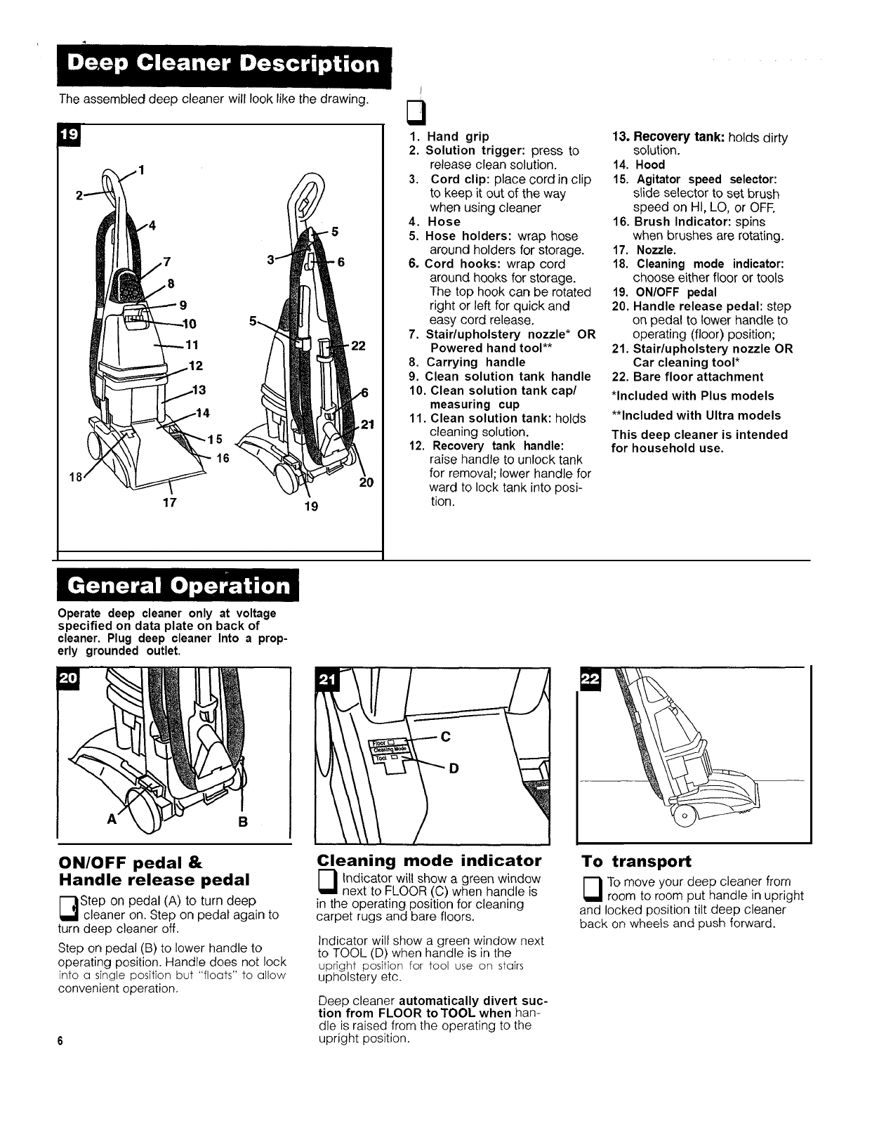 Deep cleaner description ........ 6